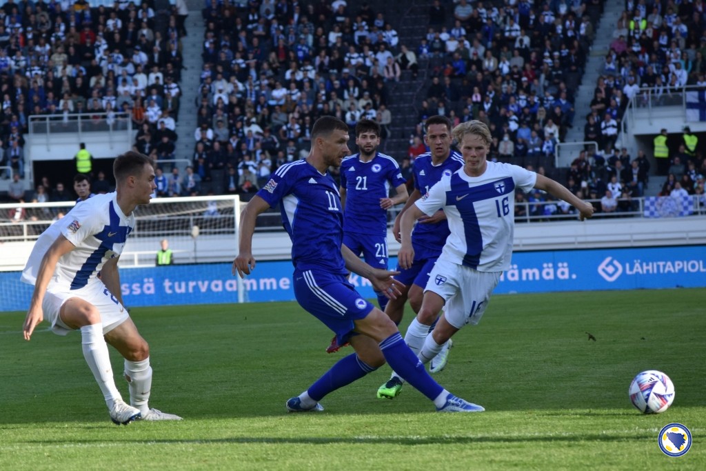 Reprezentacije Bosne i Hercegovine i Finske podijelile su bodove na Olimpijskom stadionu u Helsinkiju u prvoj utakmici nove sezone Lige nacija odigravši neriješeno 1:1. Finci su na početku utakmice imali veći posjed lopte, ali nisu uspijevali stvoriti konkretnije prilike. U 15. minuti su uspjeli zatresti mrežu Šehićevog gola, ali je gol bio poništen zbog ofsajda u kojem se našao Pukki. U nastavku prvog poluvremena nije bilo previše uzbuđenja. Selekcije su se smjenjivale u inicijativama, a pet minuta prije odlaska na odmor Pukki je sjajno pokušao nakon duge akcije, ali je Šehić odlično intervenisao.