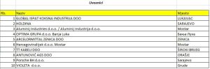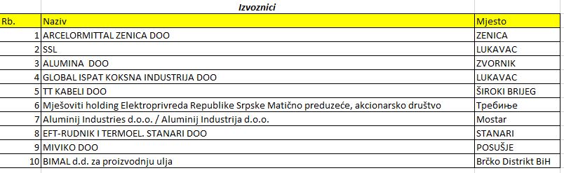 Na primjer, najveći izvoznik iz Bosne i Hercegovine u 2022. godini bila je kompanija Aluminij Industrija Mostar a na listi za 2023. godinu nalazi se tek na 7. mjestu.