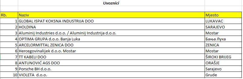Kada su u pitanju najveći uvoznici u 2023. godini, i na toj listi su se desile izmjene tako je prošlogodišenjeg najvećeg uvoznika Holdina d.o.o. – Sarajevo, zamijenio GIKIL Lukavac a Holdina je sada na drugom mjestu.