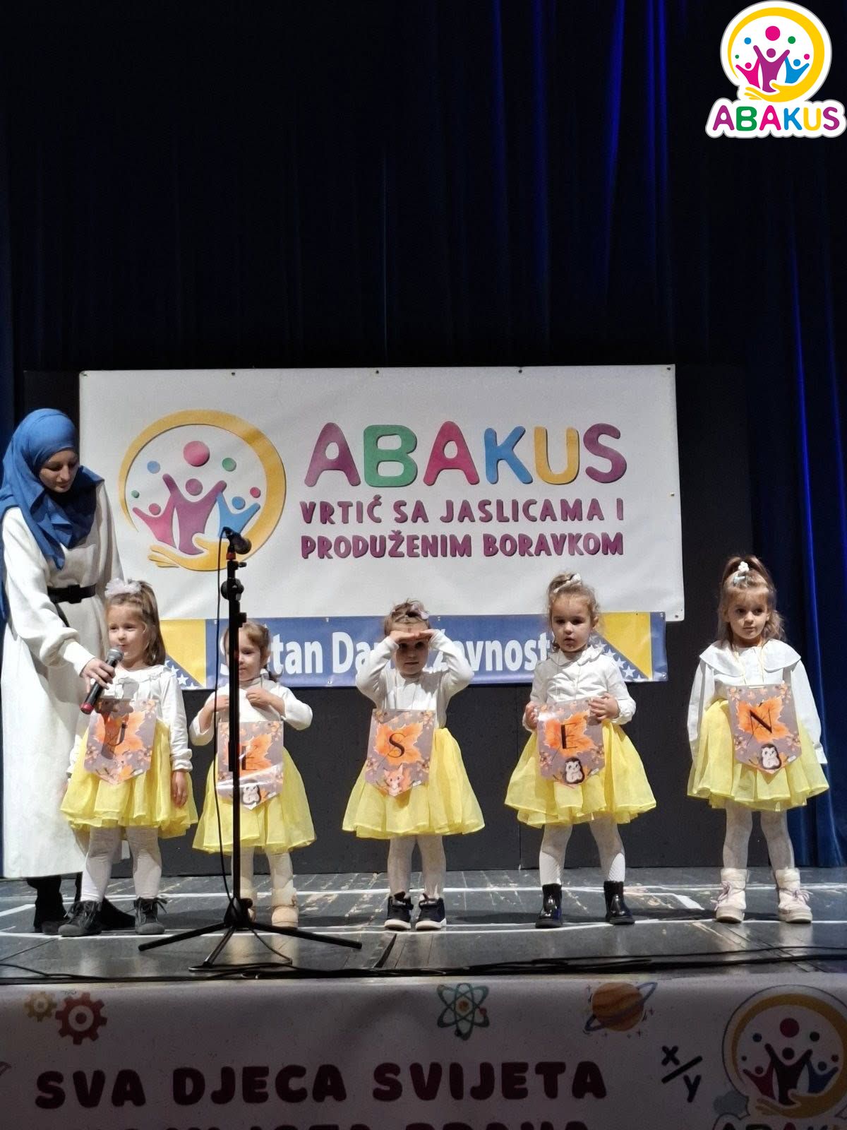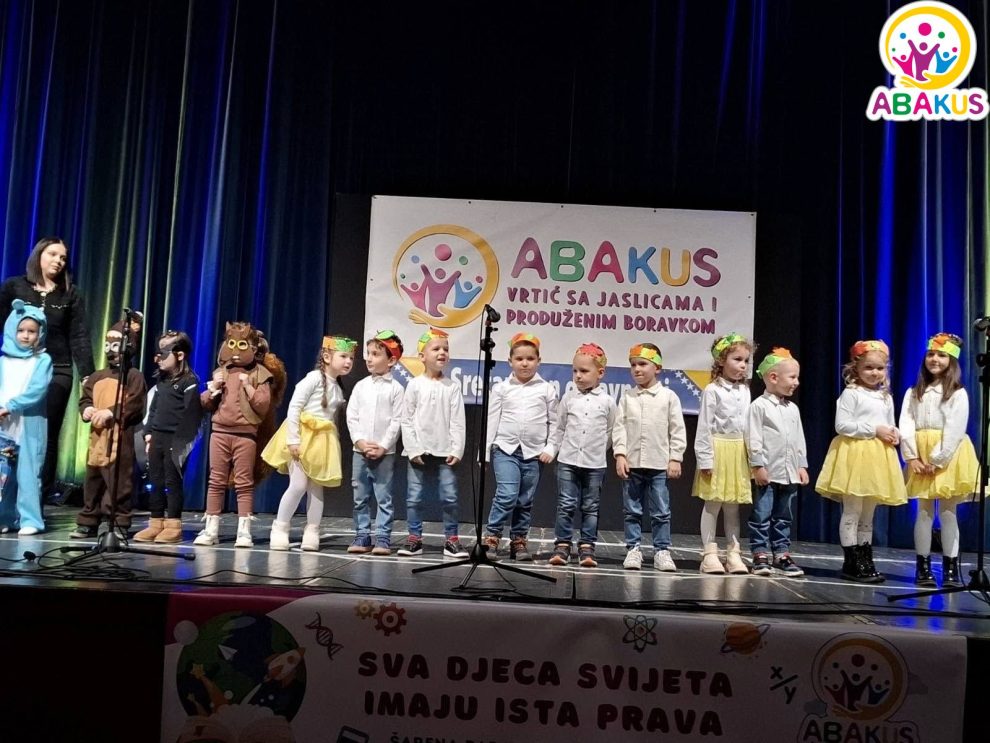 Vrtić „Abakus“ iz Zenice svečano je obilježio Međunarodni dan djeteta i Dan državnosti Bosne i Hercegovine manifestacijom održanom na Velikoj sceni Bosanskog narodnog pozorišta Zenica, gdje je publika mogla uživati u bogatom i emotivnom programu posvećenom najmlađima.