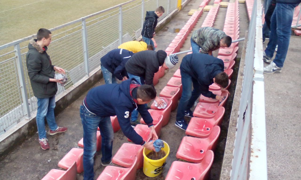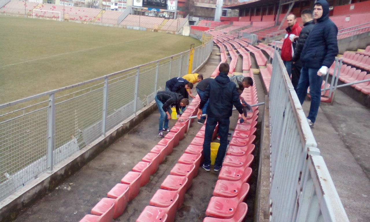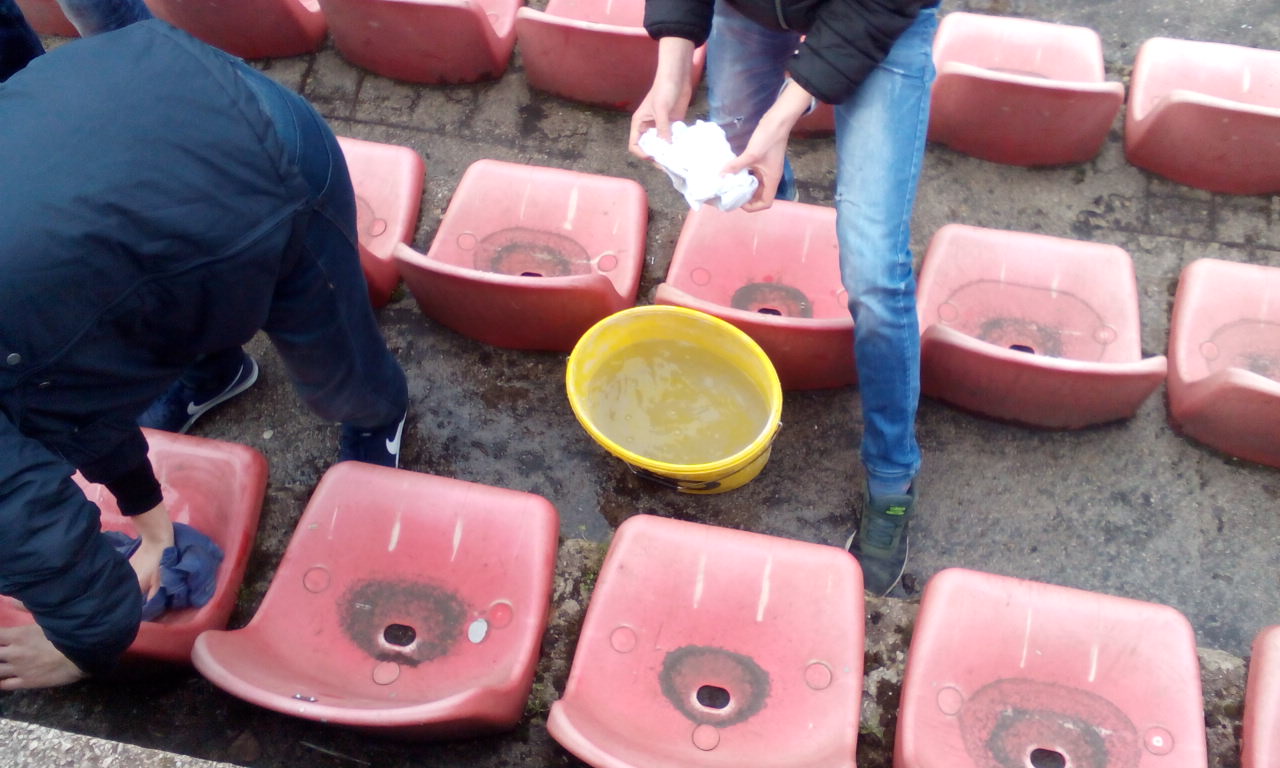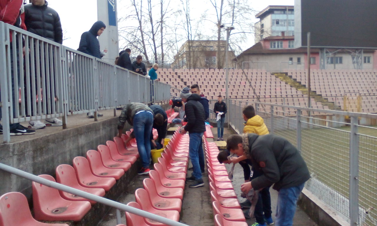 FOTO: akcija čišćenja stolica na stadionu Bilino polje – U skladu sa izraženom željom rukovodstva UG Robijaši Zenica 1988, da navijači pomognu u čišćenju i pripremanju stadiona za subotnju utakmicu, danas je počela akcija čišćenja stolica na stadionu Bilino polje u Zenici.