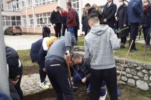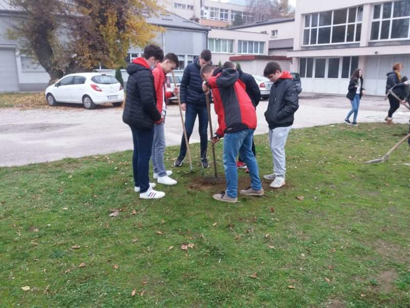 I faza – Učenici sve tri škole, na zajedničkim zelenim površinama, iza školske zgrade, zasadili su oko 40 sadnica bijelog i crnog bora, jasena i tuje.
