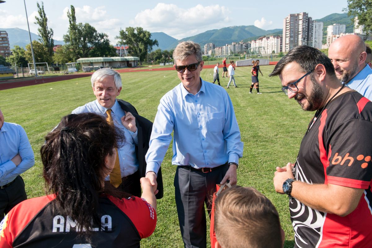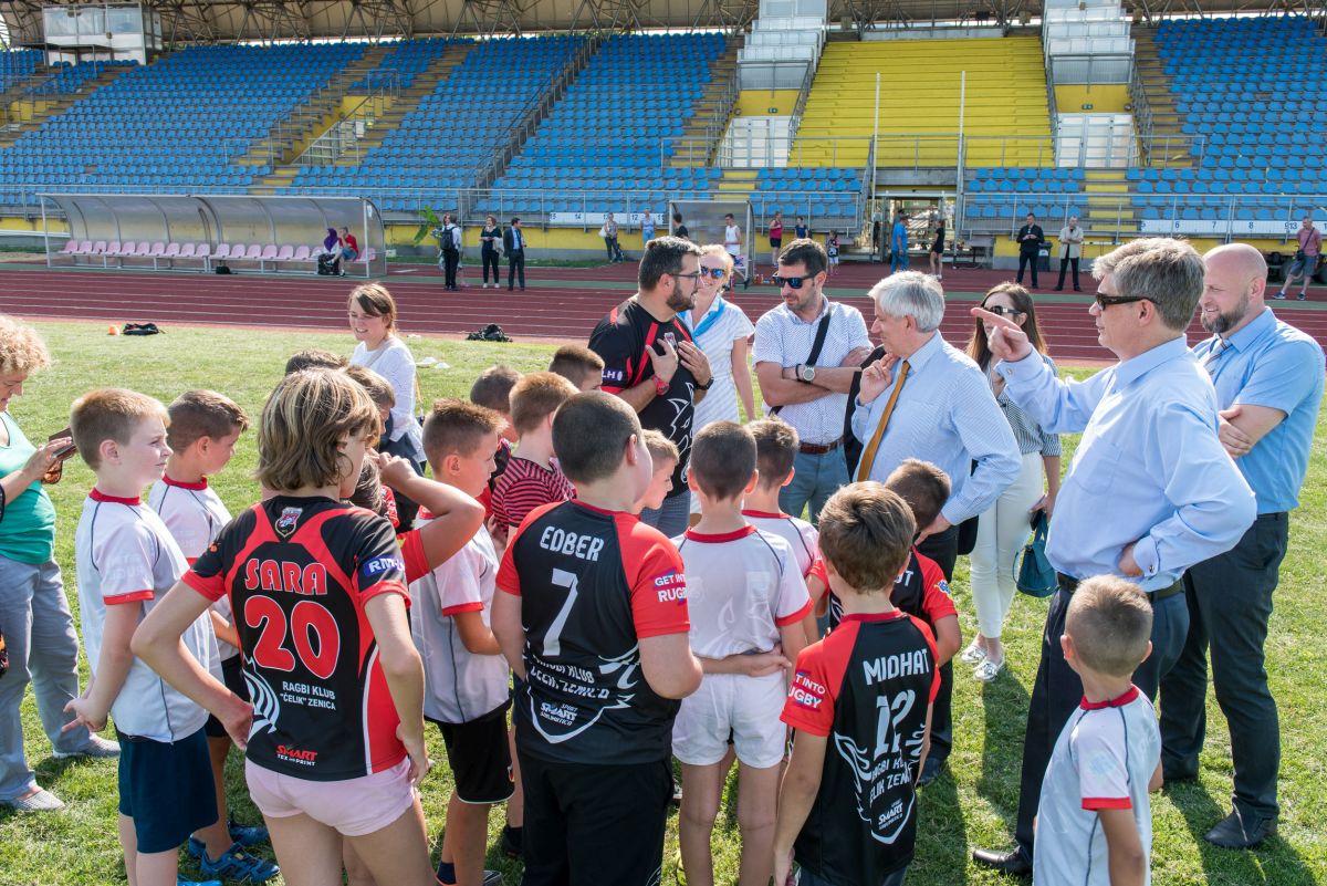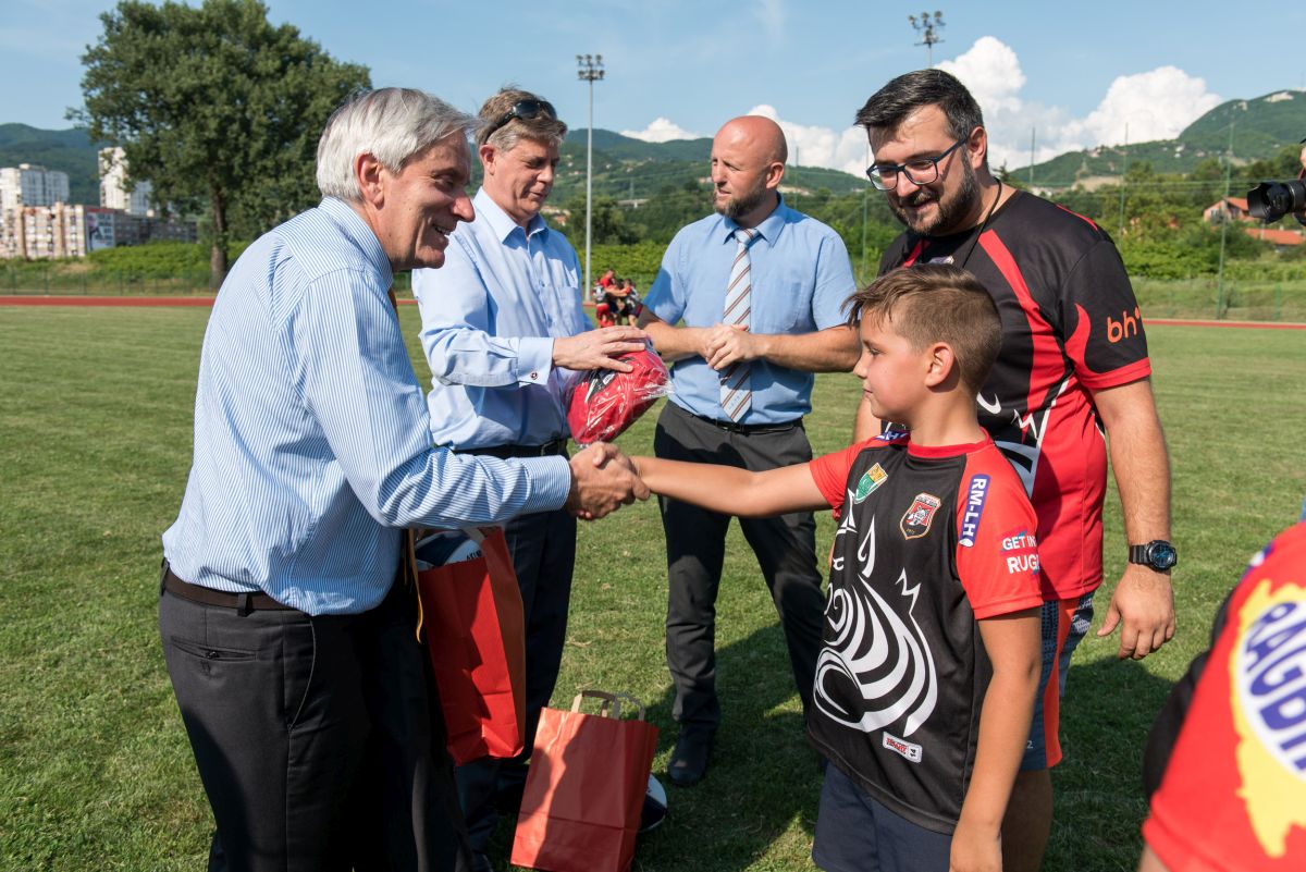 FOTO: Ambasadori Wigemark i Rousson na treningu najmlađih ragbijaša Čelika – Na stadionu „Kamberović polje“ u Zenici održan je trening mladih selekcija ragbi kluba Čelik na kojoj su u sklopu svoje posjete u Zenici prisustvovali Šef delegacije EU i specijalni predstavnik EU u Bosni i Hercegovini nj.e. ambasador Lars – Gunnar Wigemark i ambasador Francuske u Bosni i Hercegovini nj.e. Guillaume Rousson.