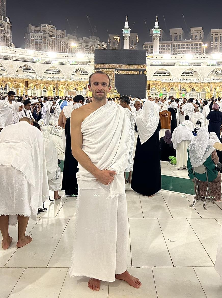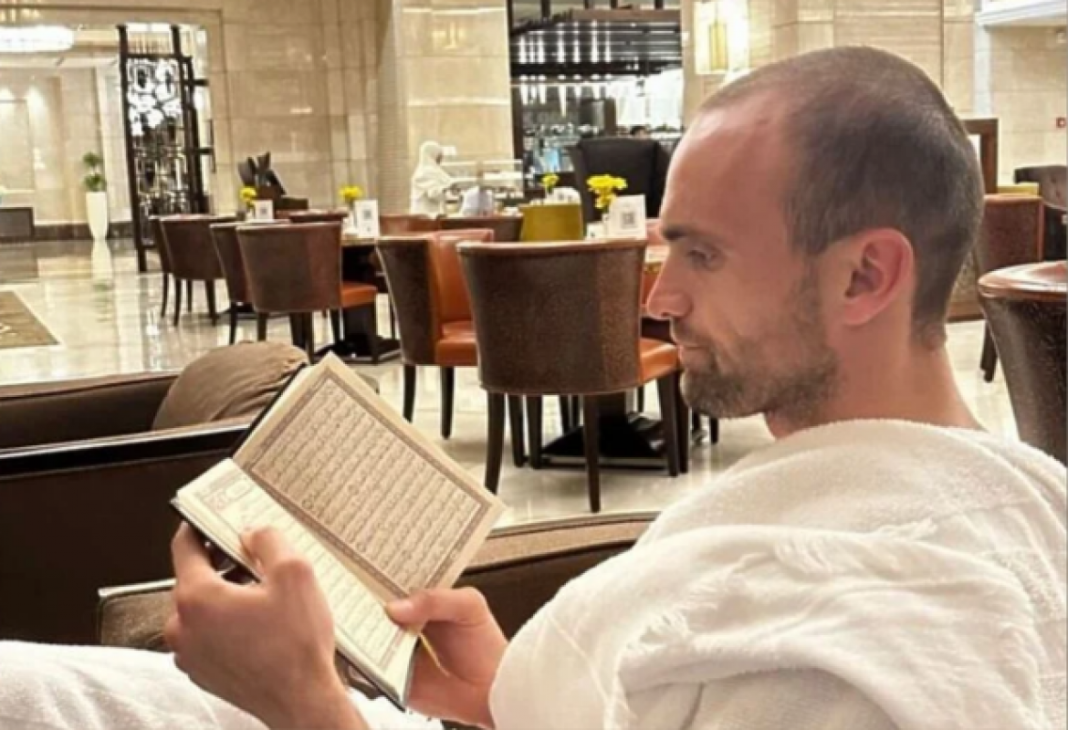 Njegova supruga Amina objavila je na Instagramu story na kojem naš bh. atletičar u ihramu (bijeloj odjeći specifičnoj za obrede Umre i hadždža) uči Kur’an u Mekki, a on je isti taj story repostao na svom storyju.