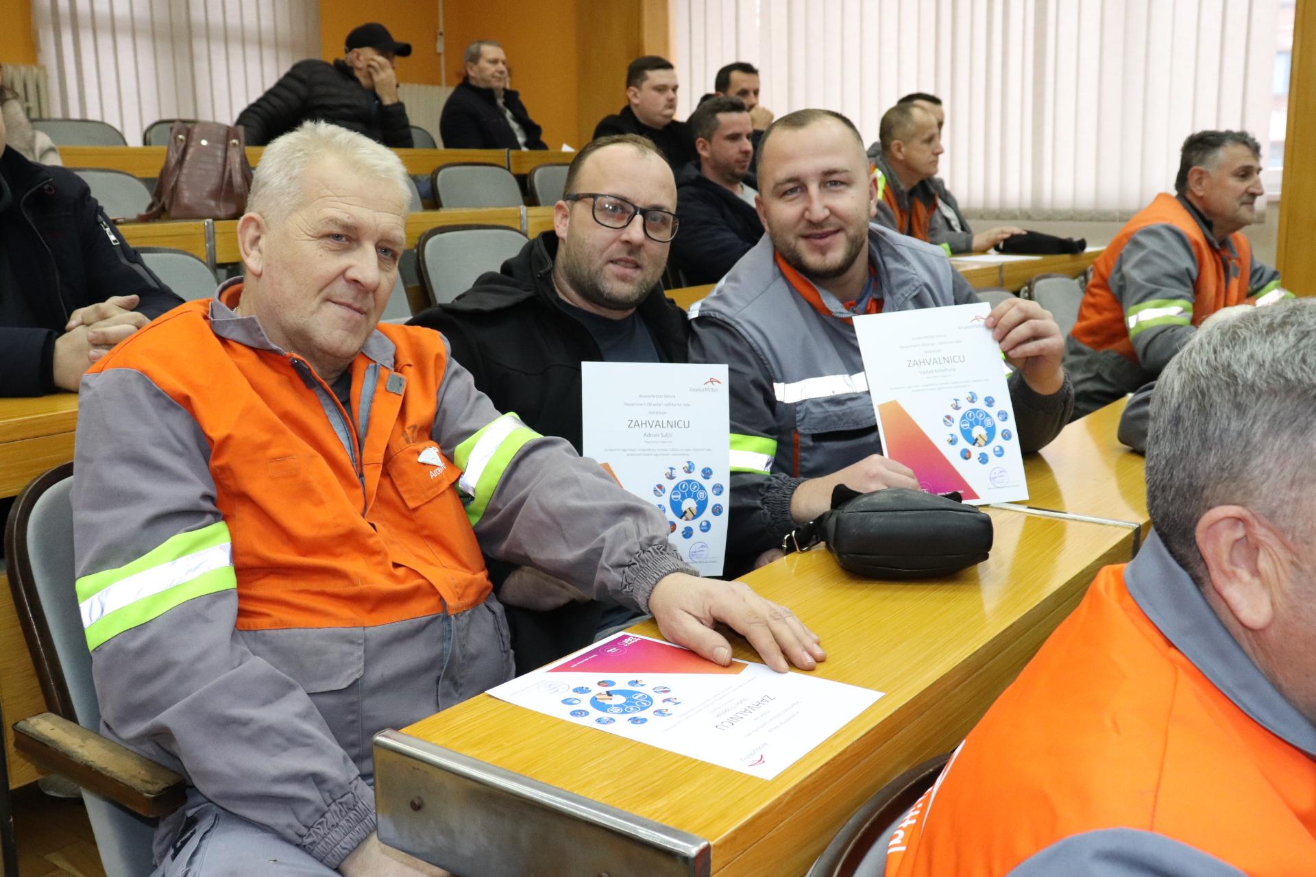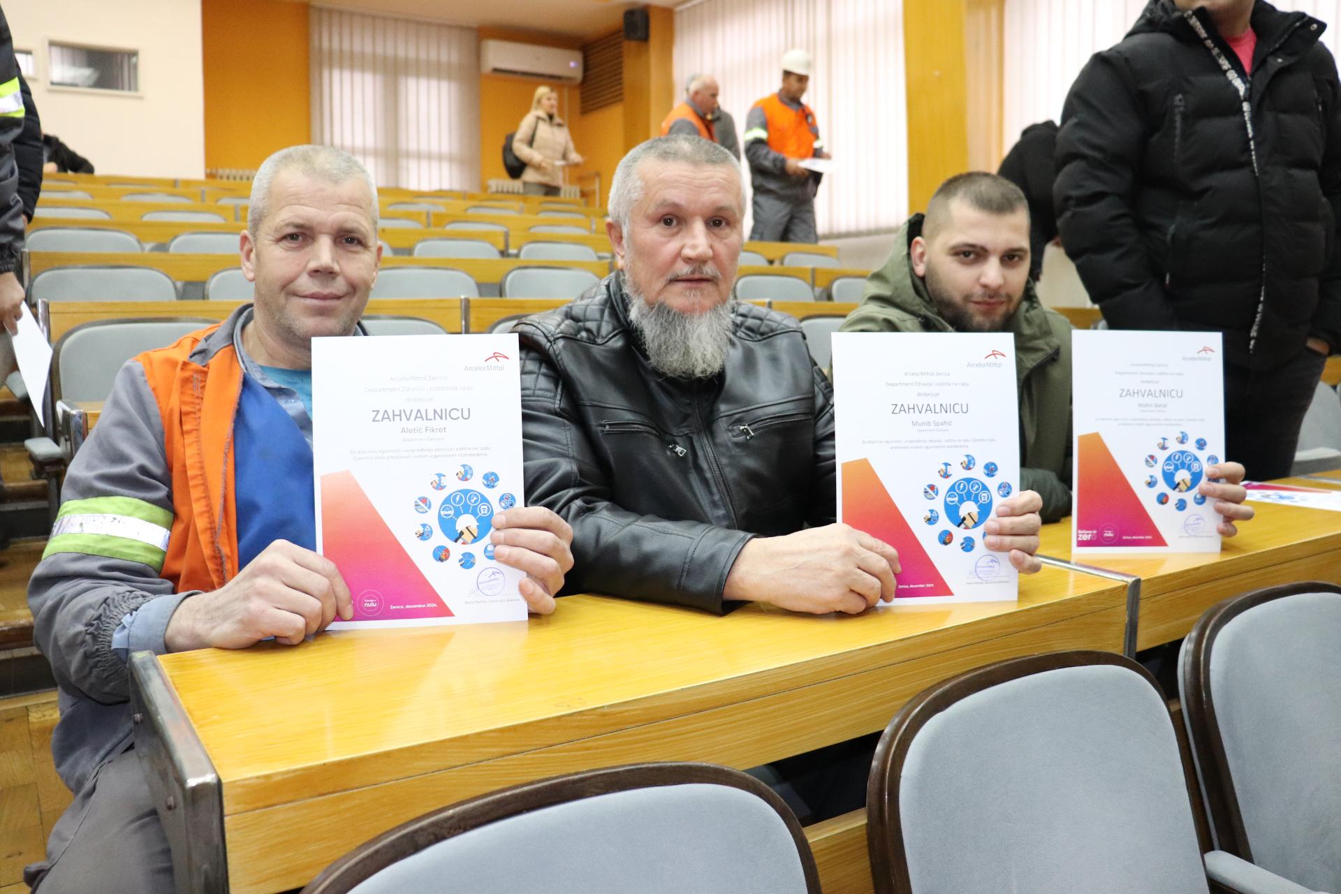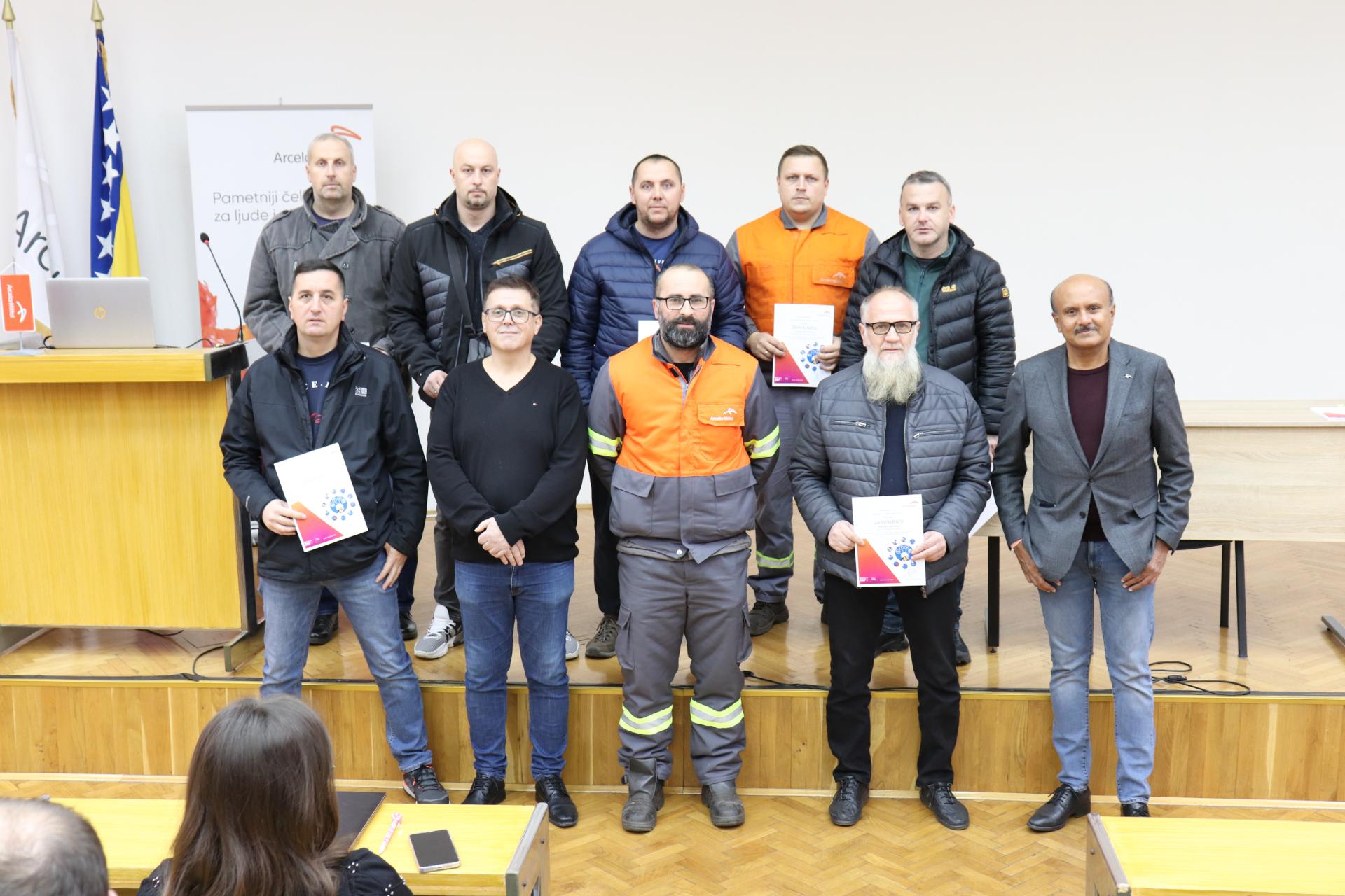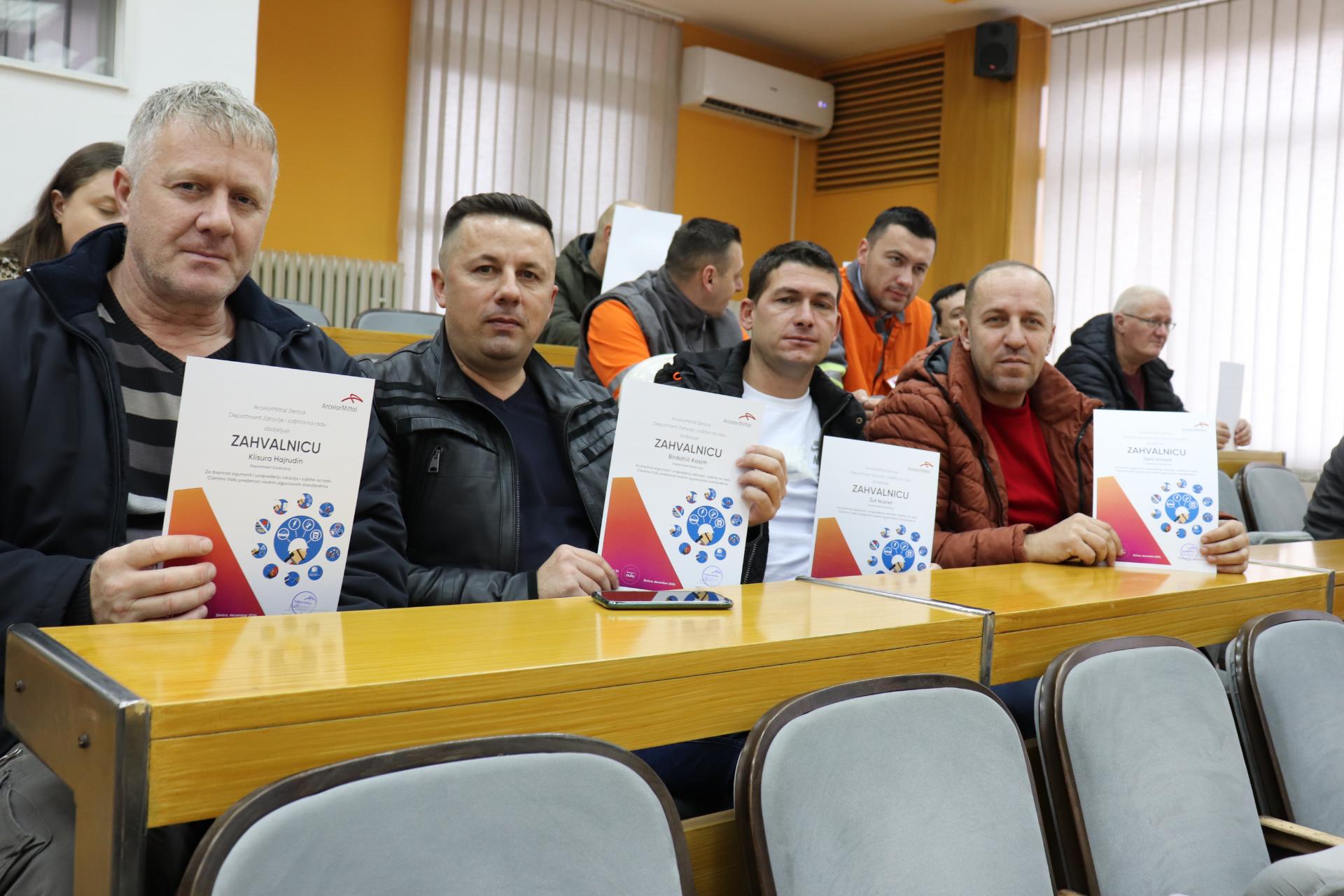 Jučer u ArcelorMittal Zenica je održana Ceremonija nagrađivanja zaposlenika za izuzetan doprinos oblasti Zdravlja i zaštite na radu. Nagrađeno je ukupno 269 radnika, u okviru tri kategorije: radnici, poslovođe i menadžeri/asistenti menadžera. Zaposlenici su nagrađeni za poseban doprinos Zaštiti na radu u toku obavljanja svakodnevnih poslova. Nagrađeni zaposlenici obavljaju svakodnevne poslove u skladu sa svim pravilima zaštite na radu i poštujući standarde ArcelorMittala. Na ovaj način, Kompanija želi da motivira zaposlenike da nastave obavljati poslove na siguran način jer samo tako možemo postići zajednički cilj – “Nula povreda“.
