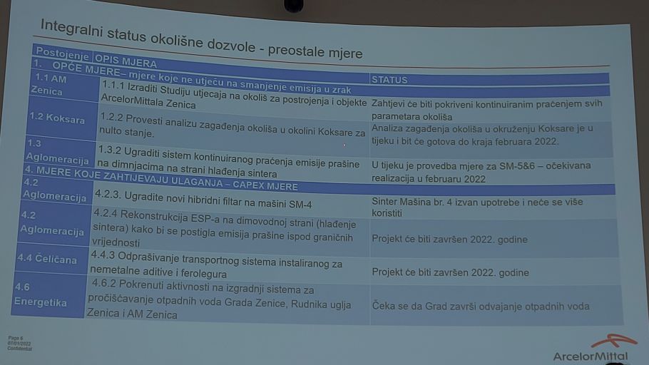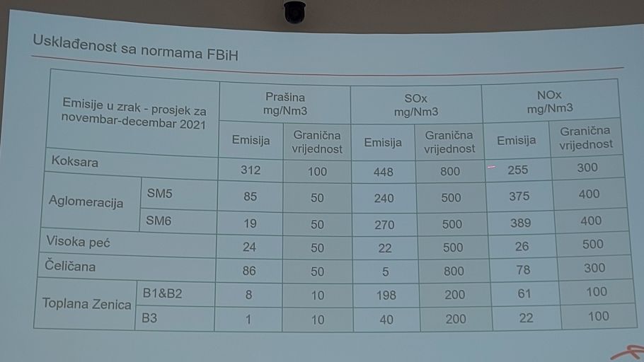 Prema informacijama iz kompanije Aglomeracija, Visoka peć i Toplana Zenica ispunjavaju sve uslove i emisije koje emituju ovi pogoni su u dozvoljenim granicama zagađenja.