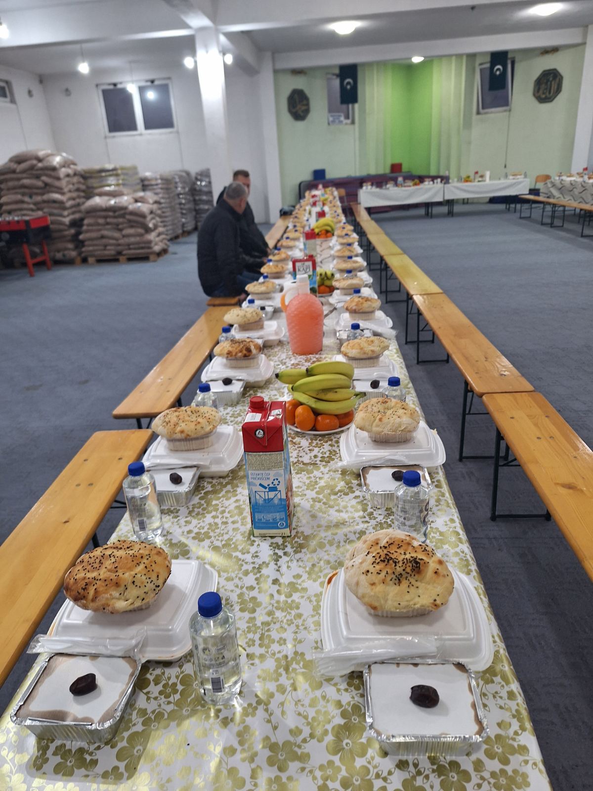 Nakon klanjanja akšam namaza svi smo zajedno iftarili u suterenu džamije u lijepom prijateljskom raspoloženju. Na iftaru su bili prisutni postači iz 15 džemata Medžlisa IZ Breza.