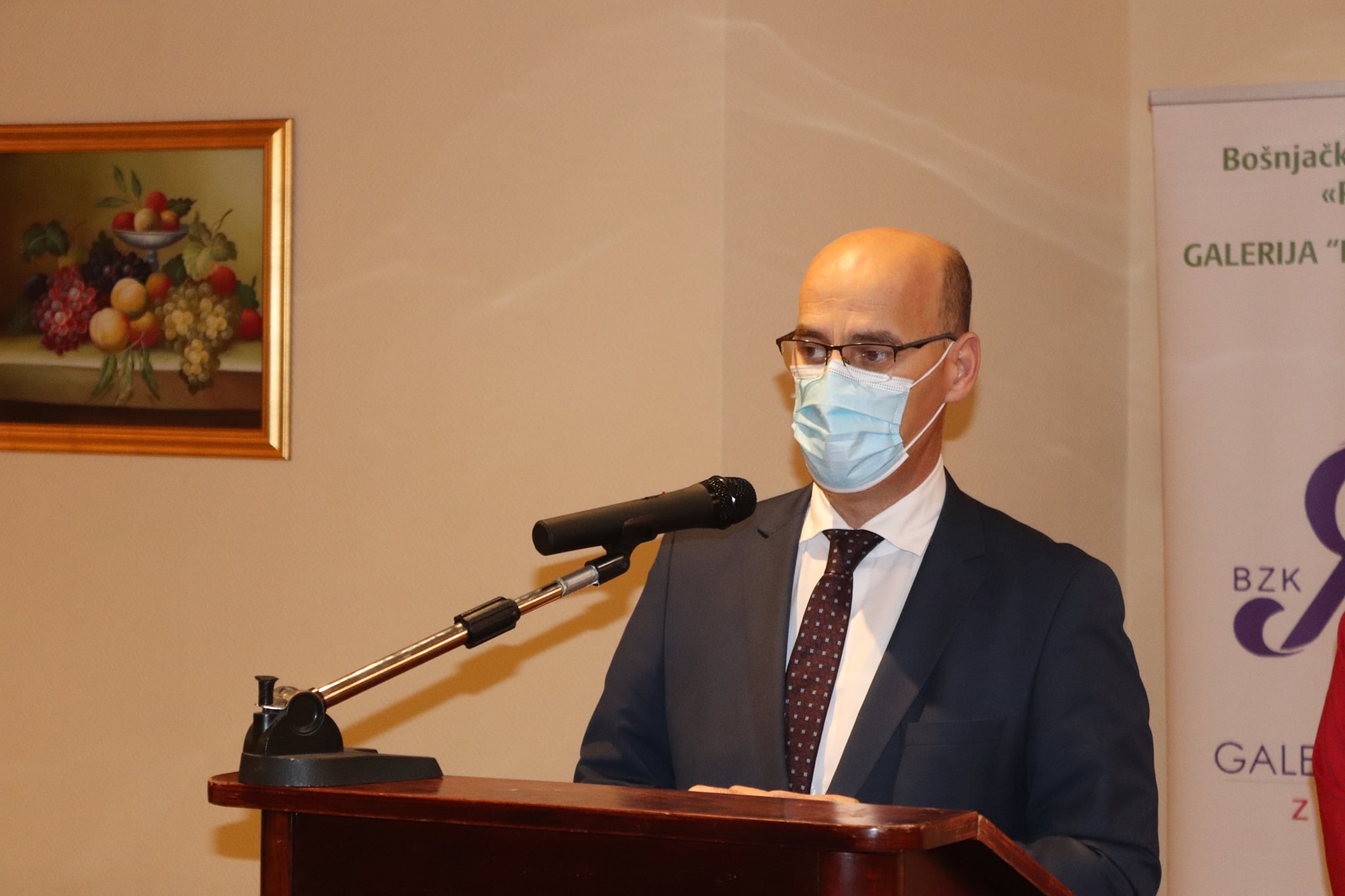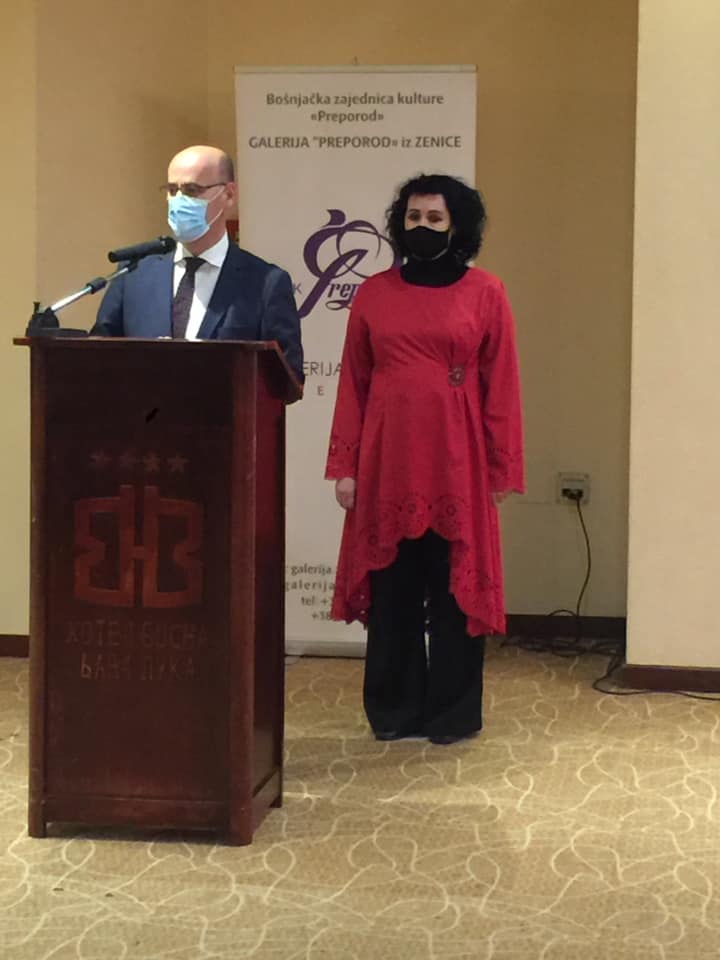 Ramiz Salkić, potpredsjednik bh. entiteta Republika Srpska, danas je u Kristalnoj sali hotela Bosna u Banjaluci otvorio izložbu “Stara Bosna” povodom 25. novembra, Dana državnosti Bosne i Hercegovine. Ovu izložbu, uz poštivanje epidemioloških mjera, organizovali su Kabinet potpredsjednika bh. entiteta RS iz reda bošnjačkog naroda u saradnji s Galerijom “Preporod” Zenica uz BZK “Preporod” ZDK i Gradskim odborom Stranke demokratske akcije Banjaluka.
