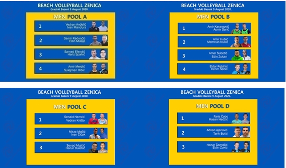 Drugog dana turnira igrale su muške ekipe, gdje je 14 ekipa žrijebom svrstano u četiri grupe kako slijedi: