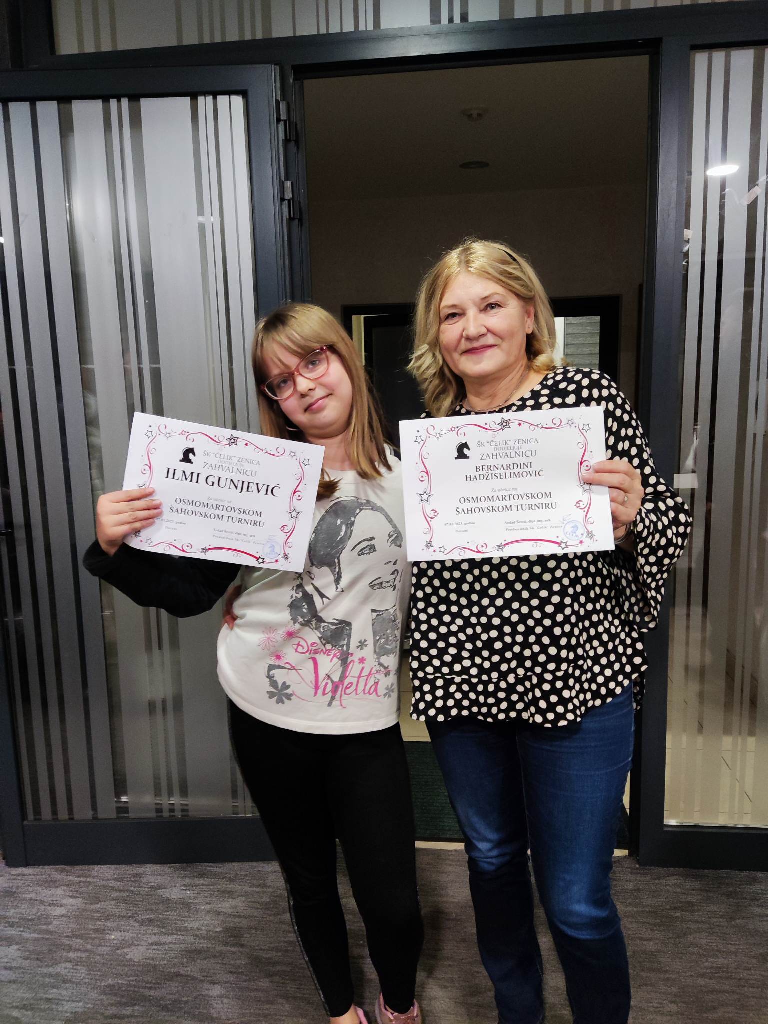 FOTO: Bernardina Hadžiselimović i Ilma Gunjević pobjednice Osmomartovskg šahovskog turnira u Zenici