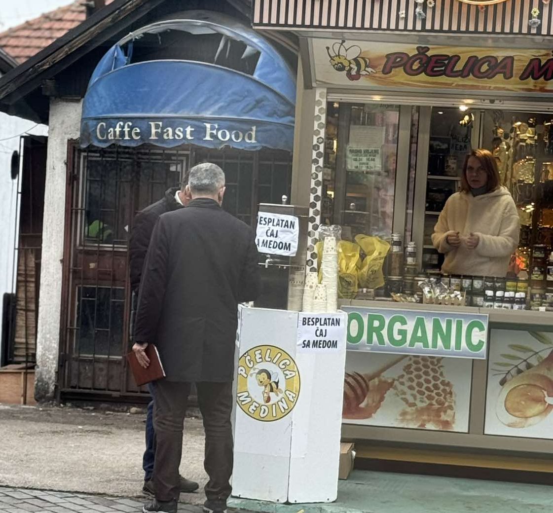 U Titovoj ulici, ispred kioska-radnje u kojoj se prodaju proizvodi “Pčelice Medine”, Zeničani su mogli dobiti – besplatan čaj s medom.