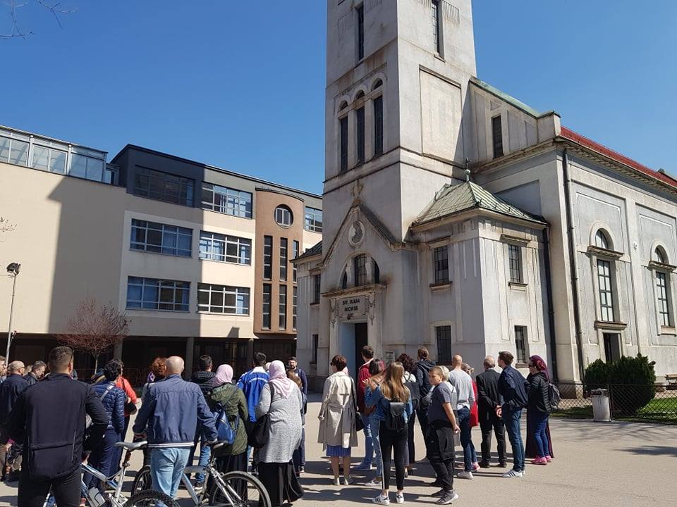 Nakon degustacije ovog tradicionalnog pića, učenici su obišli i divnu Sinagogu građenu između 1858. i 1864. godine u pseudomaurskom stilu gradnje. Sinagoga je jedan od simbola grada Zenice, a kroz svoju historiju je imala različite namjene. Karakterisao je i sat koji se nalazio iznad ulaznog portala i bila je jedina takva sinagoga u BiH.