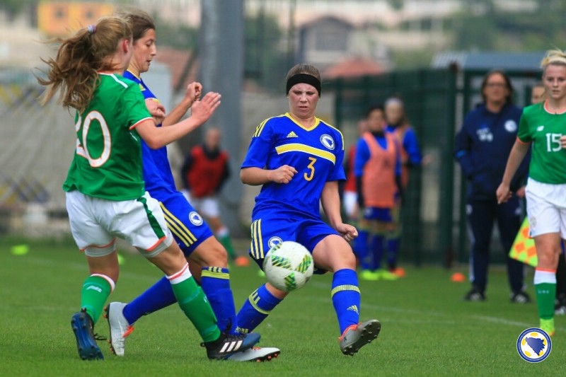 Krajšumović je u 33′ odlično proigrala Sajru Fejzić u protivničkom šesnaestercu, a naša napadačica nije uspjela da šutira i odbrambene igračice Irske su otklonile opasnost.