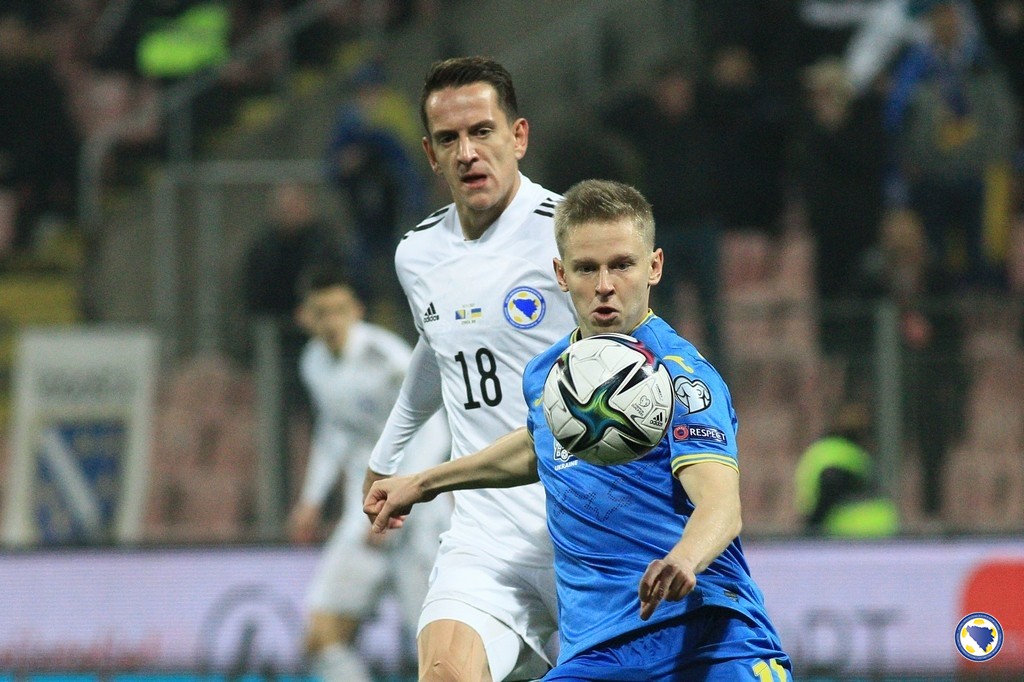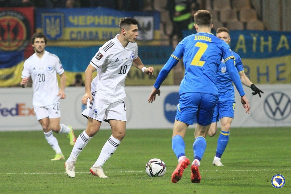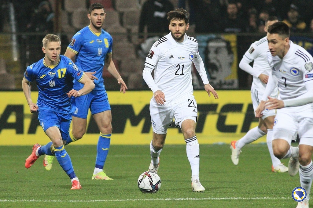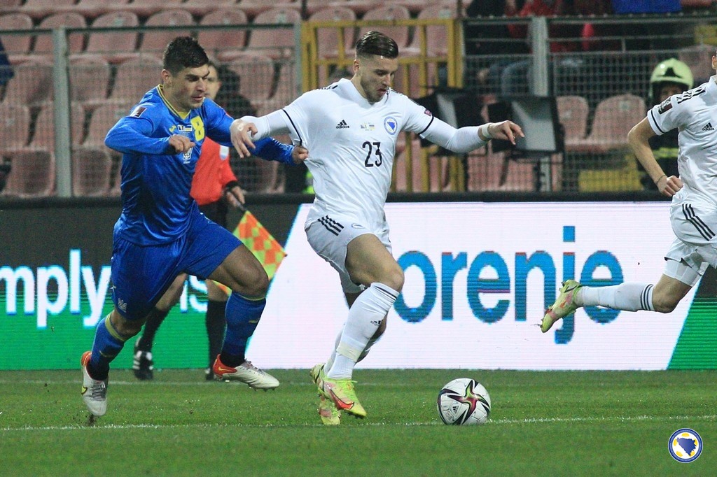 „A“ reprezentacija Bosne i Hercegovine poražena je večeras na „Bilinom polju“ u Zenici od Ukrajine sa 0:2 na kraju kvalifikacija za Svjetsko prvenstvo 2022.