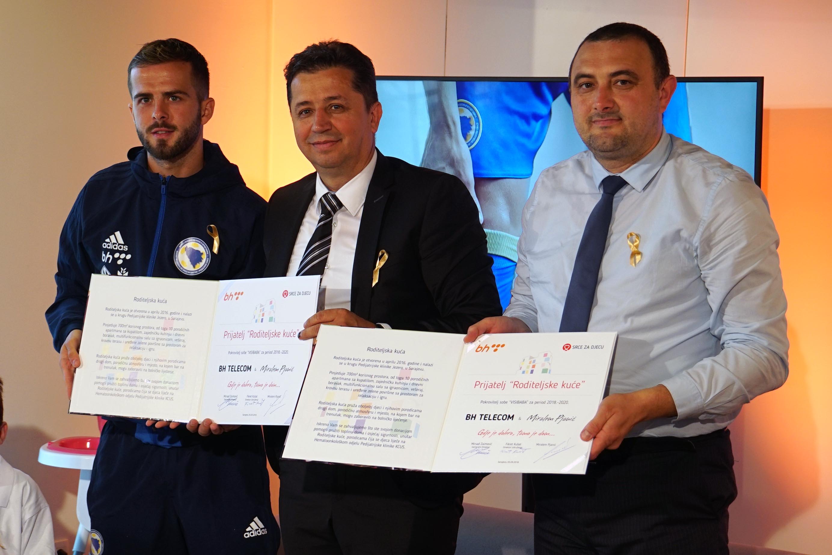 FOTO: BH Telecom, Miralem Pjanić i zaposlenici BH Telecoma pokrovitelji dva apartmana u Roditeljskoj kući – BH Telecom, Miralem Pjanić i zaposlenici BH Telecoma danas su, na Dan BH Telecoma, obradovali najmlađe Bosance i Hercegovce. Naime, generalni direktor i zaposlenici BH Telecoma te nogometni reprezentativac Miralem Pjanić potpisali su ugovor o pokroviteljstvu dva apartmana u Roditeljskoj kući u Sarajevu u kojoj borave roditelji i njihova djeca, oboljela od malignih bolesti. Pokroviteljstvo se odnosi na period od tri godine, i za svaku godinu iznosi po 10.000 KM.