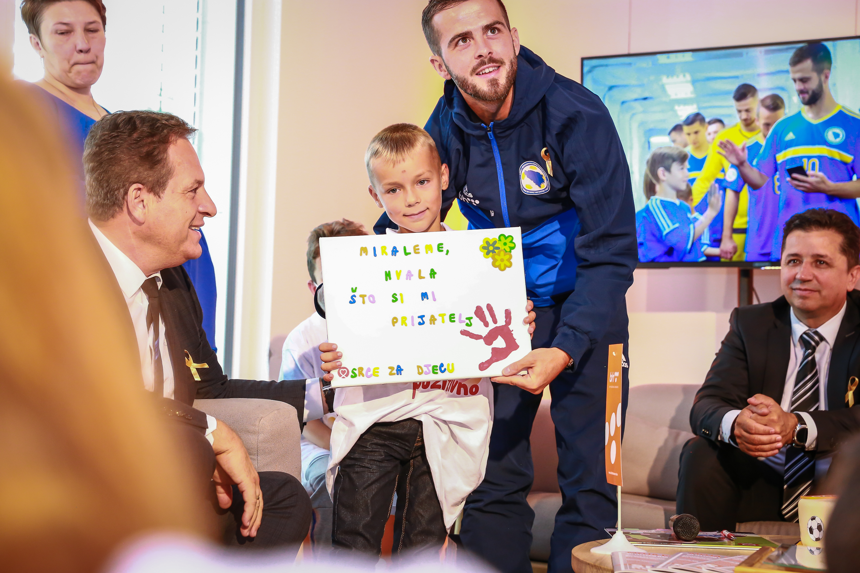 Nakon oficijelnog dijela potpisivanja ugovora o pokroviteljstvu, uslijedilo je zvanično otvaranje oba apartmana, a potom su se mališani fotografirali sa svojom zvijezdom, Miralemom Pjanićem, koji ih je obradovao potpisanim dresovima i autogramima.