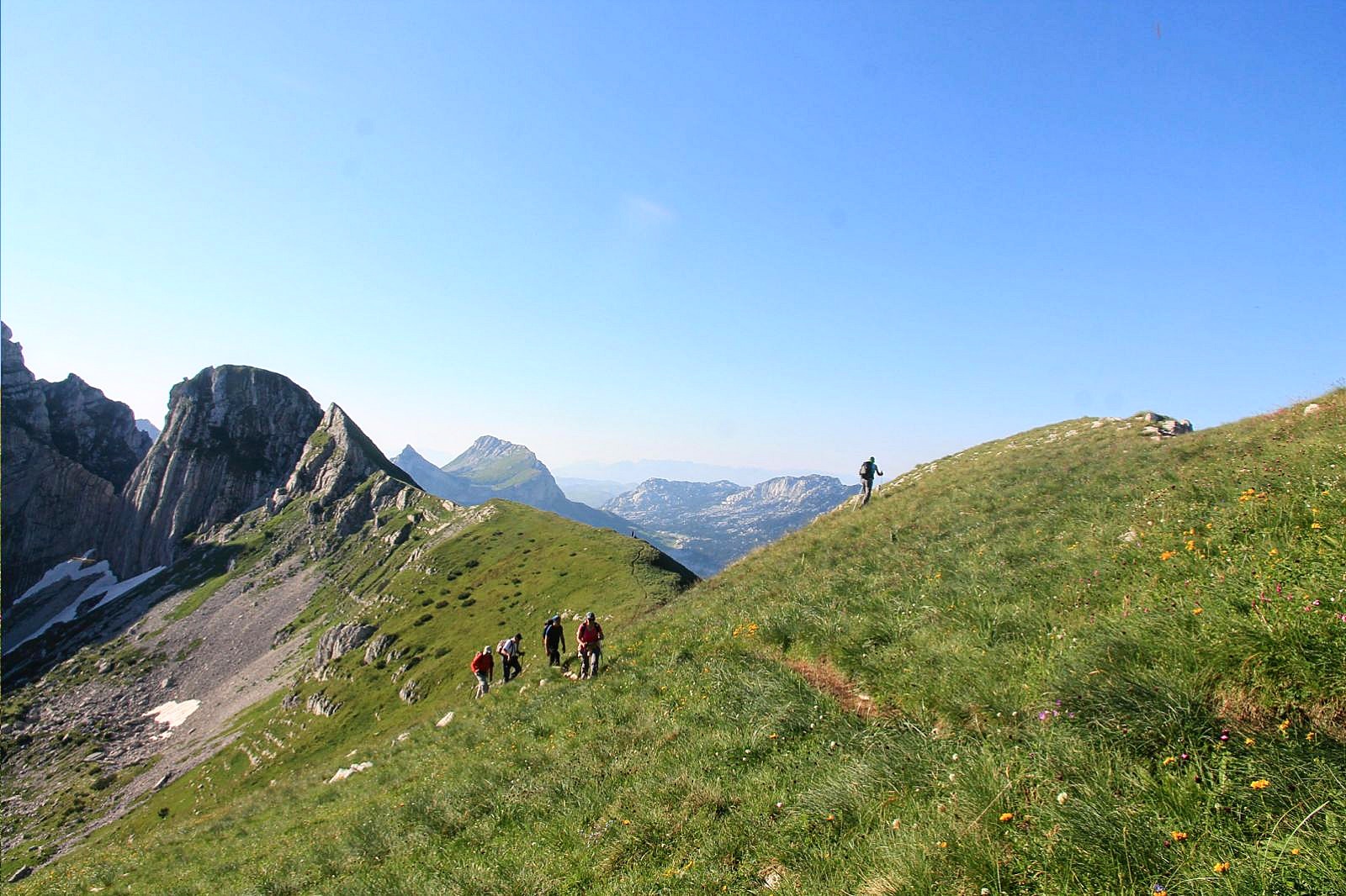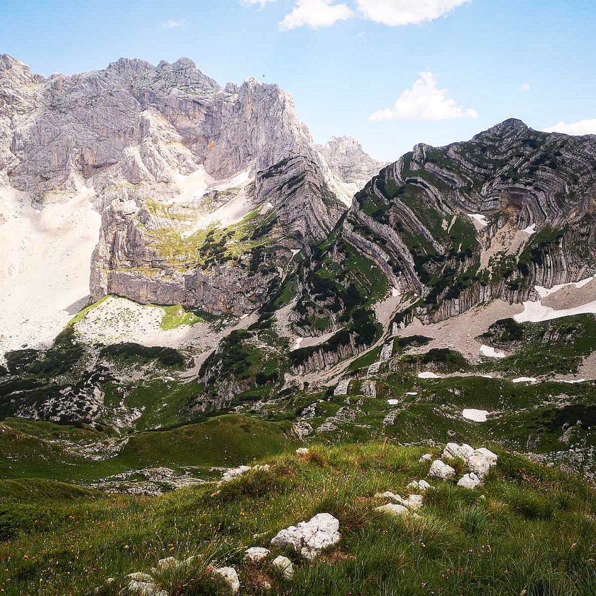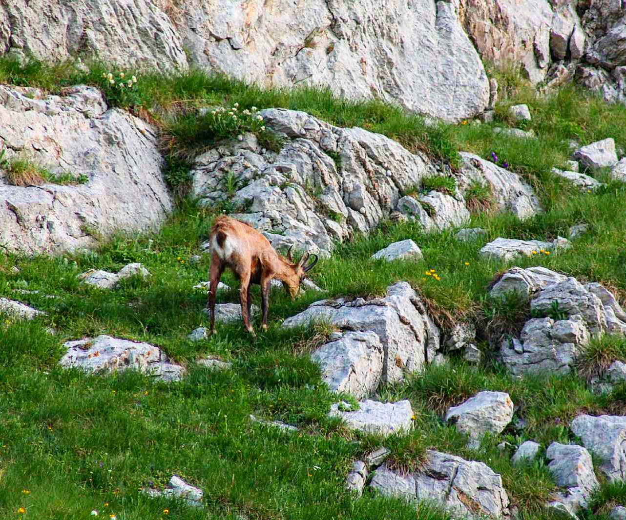 Krenuli smo na uspon na planinski vrh Bobotov kuk sa velikim entuzijazmom i očekivanjem. Vrlo brzo smo imali društvo velikog broja divokoza koje su nas pratile jednim dijelom staze, i držale su se na distanci, ali ipak dovoljno blizu da uživamo u njihovom društvu.