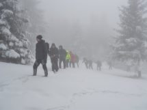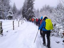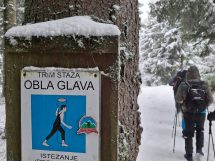 Zbog snijega i magle planirana kraća ruta prema izletištu i vrhu Obla glava izmijenjena je, te je kolona nastavila obilazak preko Zaruđa, prateći žute markacije „Puta zdrave hrane“. Dolaskom na izletište i restoran Wigvam, planinari su nastavili uređenom trim-stazom do vrha Obla glava, gdje je napravljen kraći odmor i doručak.