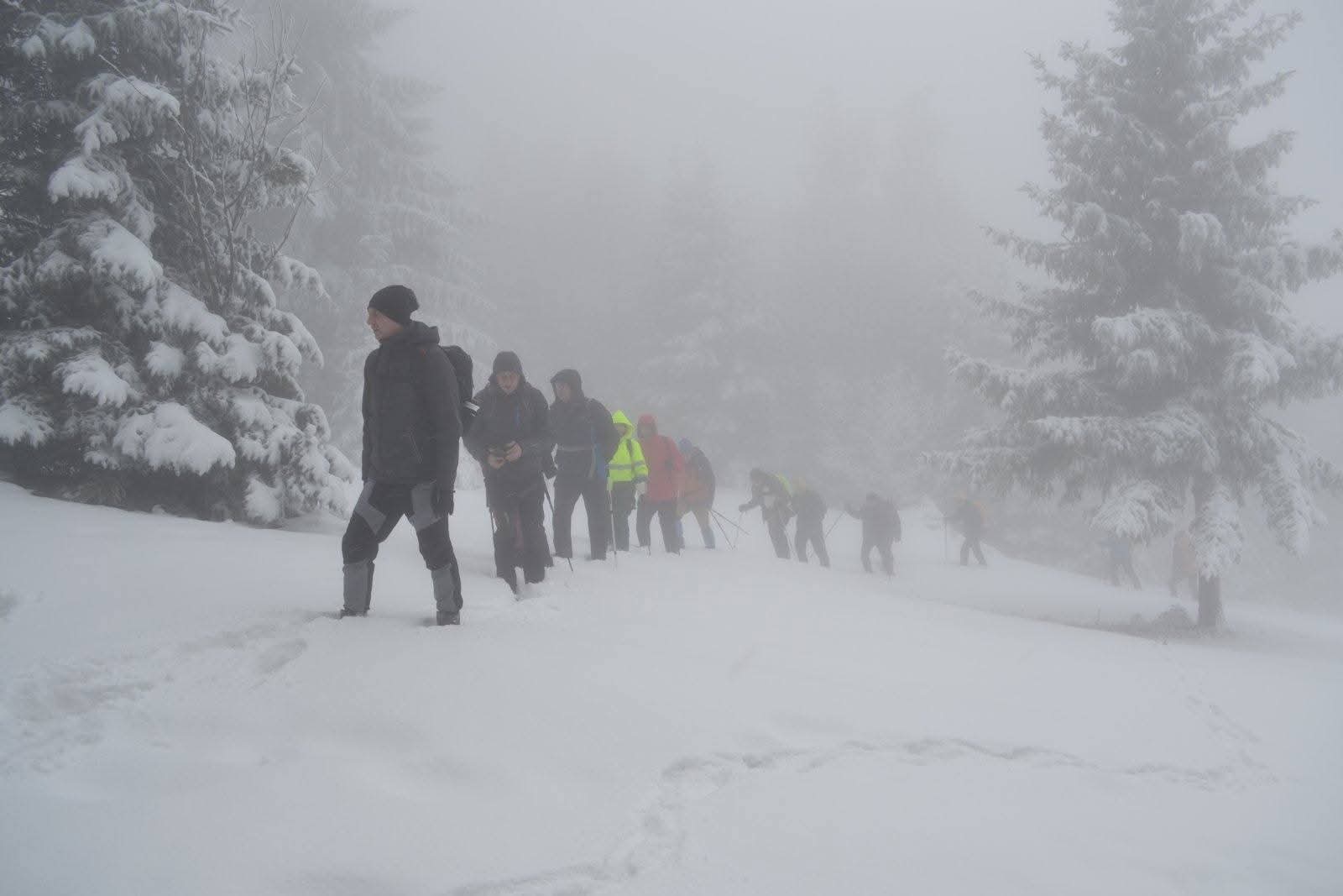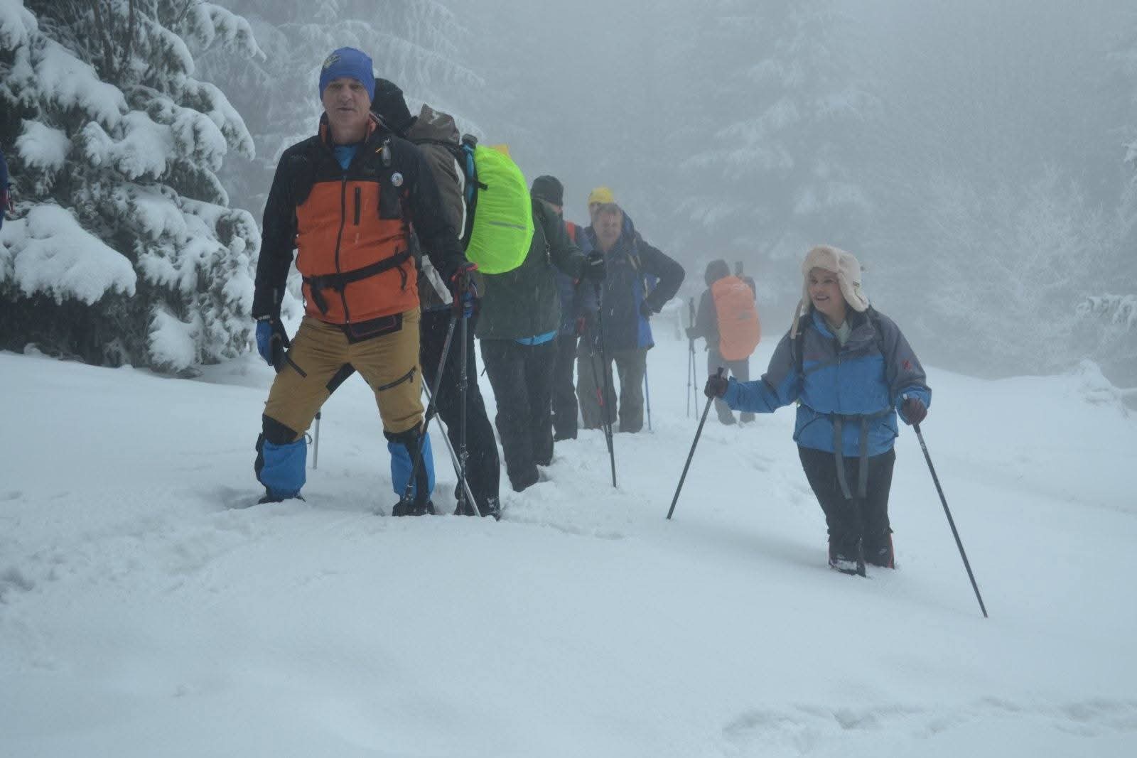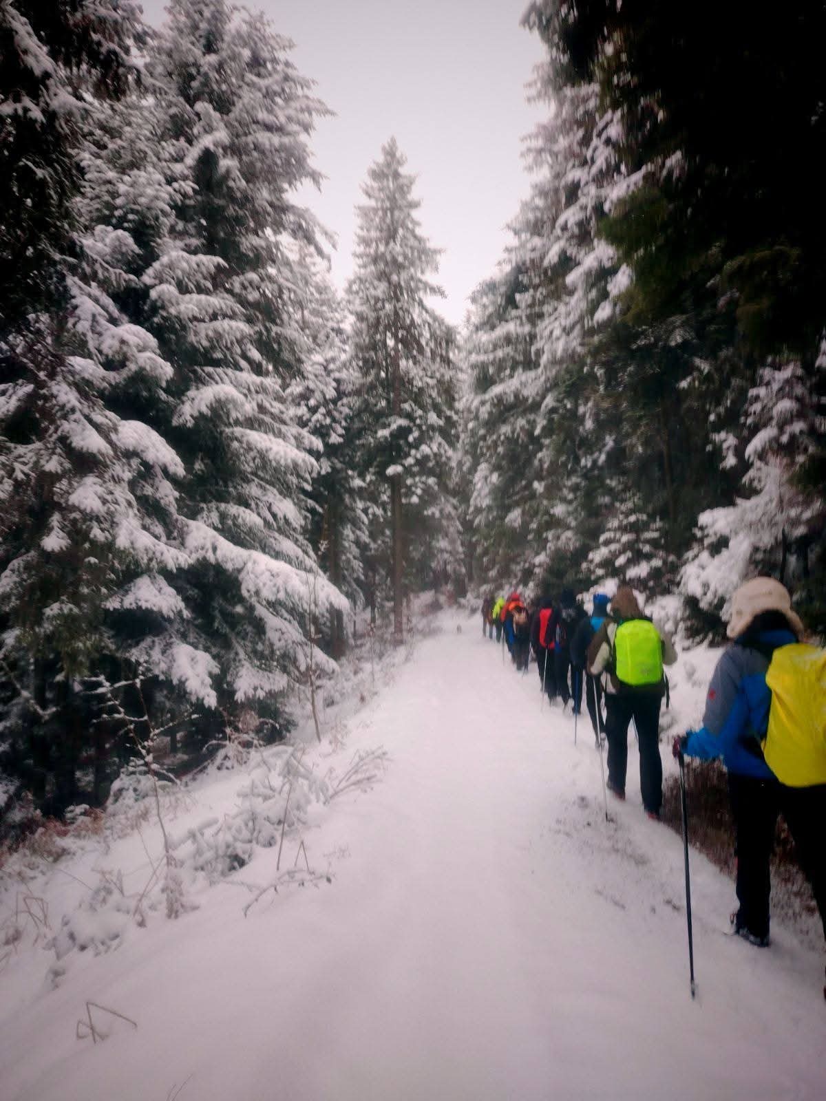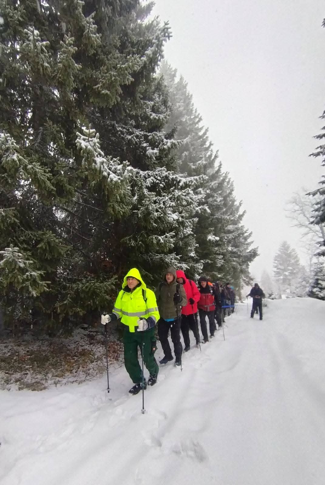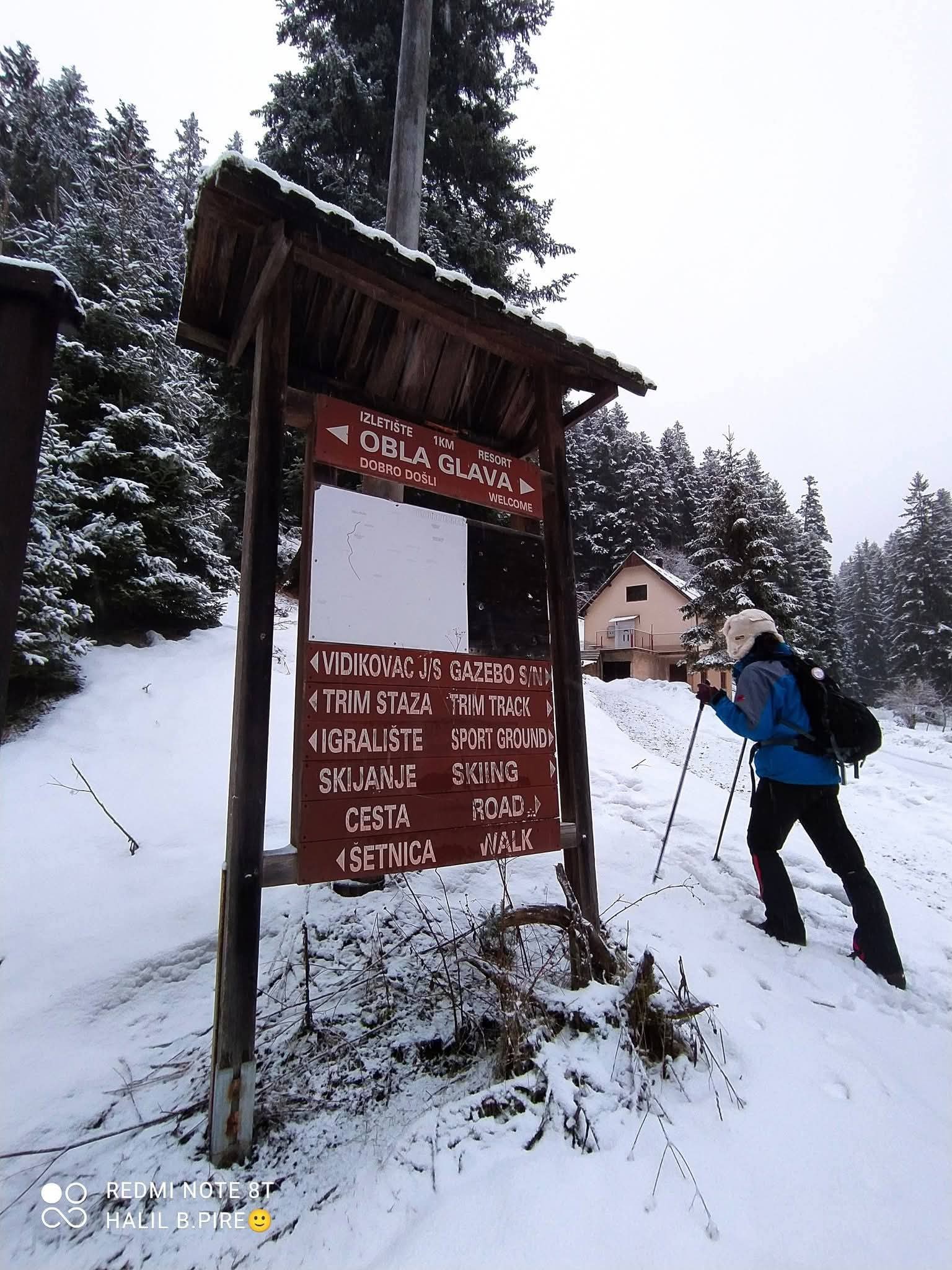 Zbog snijega i magle planirana kraća ruta prema izletištu i vrhu Obla glava izmijenjena je, te je kolona nastavila obilazak preko Zaruđa, prateći žute markacije „Puta zdrave hrane“. Dolaskom na izletište i restoran Wigvam, planinari su nastavili uređenom trim-stazom do vrha Obla glava, gdje je napravljen kraći odmor i doručak.
