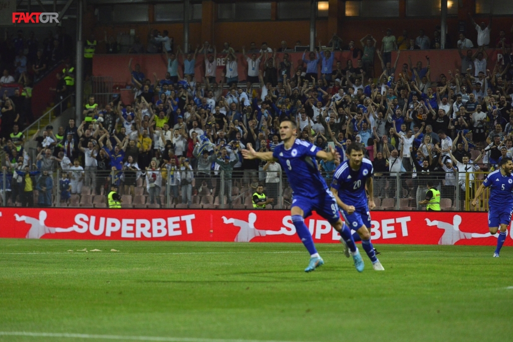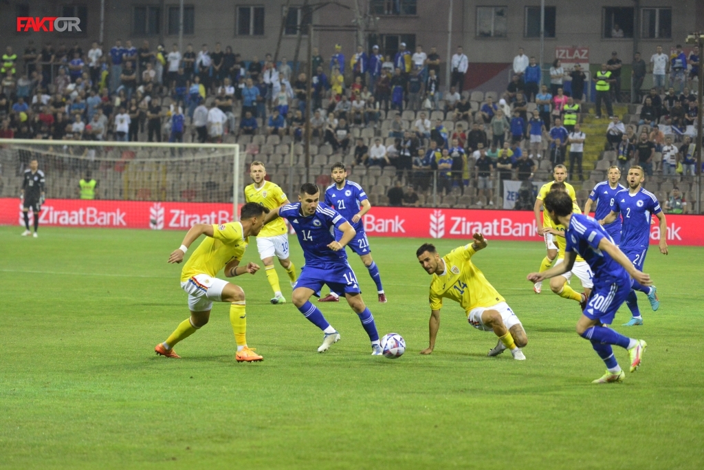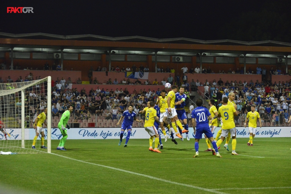 Nogometna reprezentacija Bosne i Hercegovine pobijedila je u Zenici na Bilinom Polju protiv Rumunije rezultatom 1:0, u okviru 2. kola B Lige nacija. Naš tim sada ima četiri boda i dijeli lidersku poziciju na tabeli sa selekcijom Finske. Selektor Ivaylo Petev je u odnosu na meč s Finskom izvršio čak šest izmjena i naš tim je od početka silovito krenuo. Uprkos velikom pritisku teško smo stvarali prilike, a prvi su prijetili Rumuni.