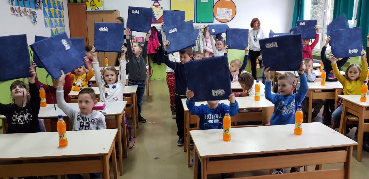 FOTO: Bihaćka pivovara i kolektiv Pivnice Gatto počastio prvačiće Osnovne škole “Meša Selimović” – Bihaćka pivovara I kolektiv Pivnice Gatto počastili prvačiće I2 razeda Osnovne Škole “Meša Selimović” zdravim LIPA sokovima i predali vrijednu donaciju specijalno skrojenih podmetača za klupe.