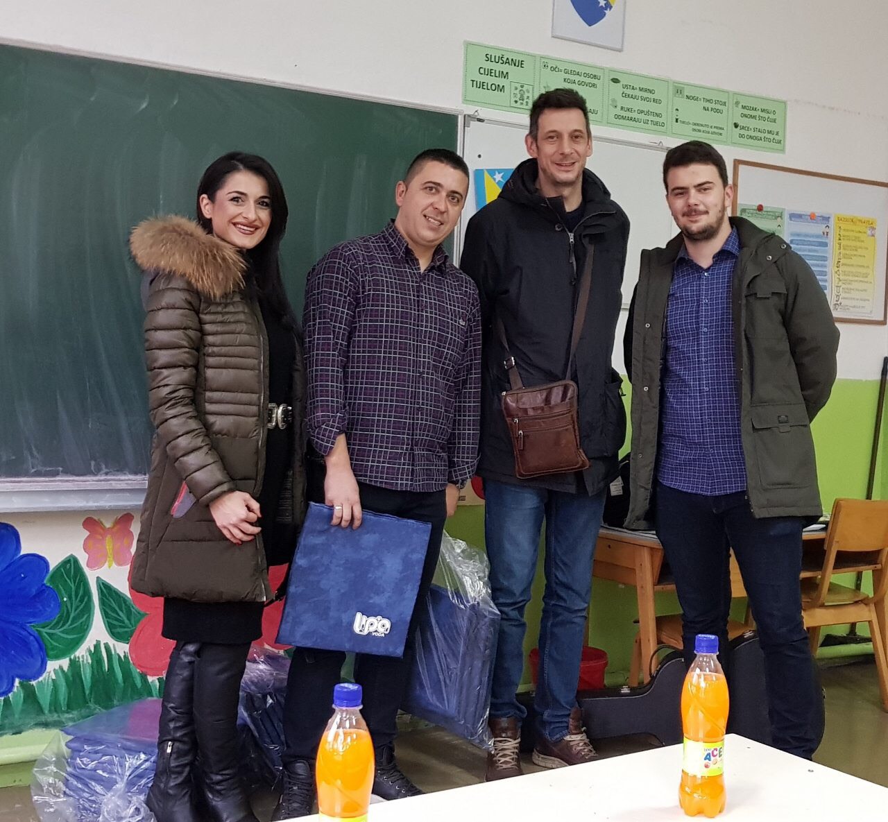 Prvi dva razred Osnovne Škole Meša Selimović je danas imao razloga za veselje I ugodnono druženje sa muzičaroma Arnelom Okićem I Harunom Sedvarevićem koji su ispred Pivnice Gatto uz muziciranje počastili čitav razred zdravim I ukusnim sokovima LIPA , Bihaćke Pivovare, te im uručili udobne podmetače za školske klupe koji će sjedenje mališanima učiniti ugodnijim.
