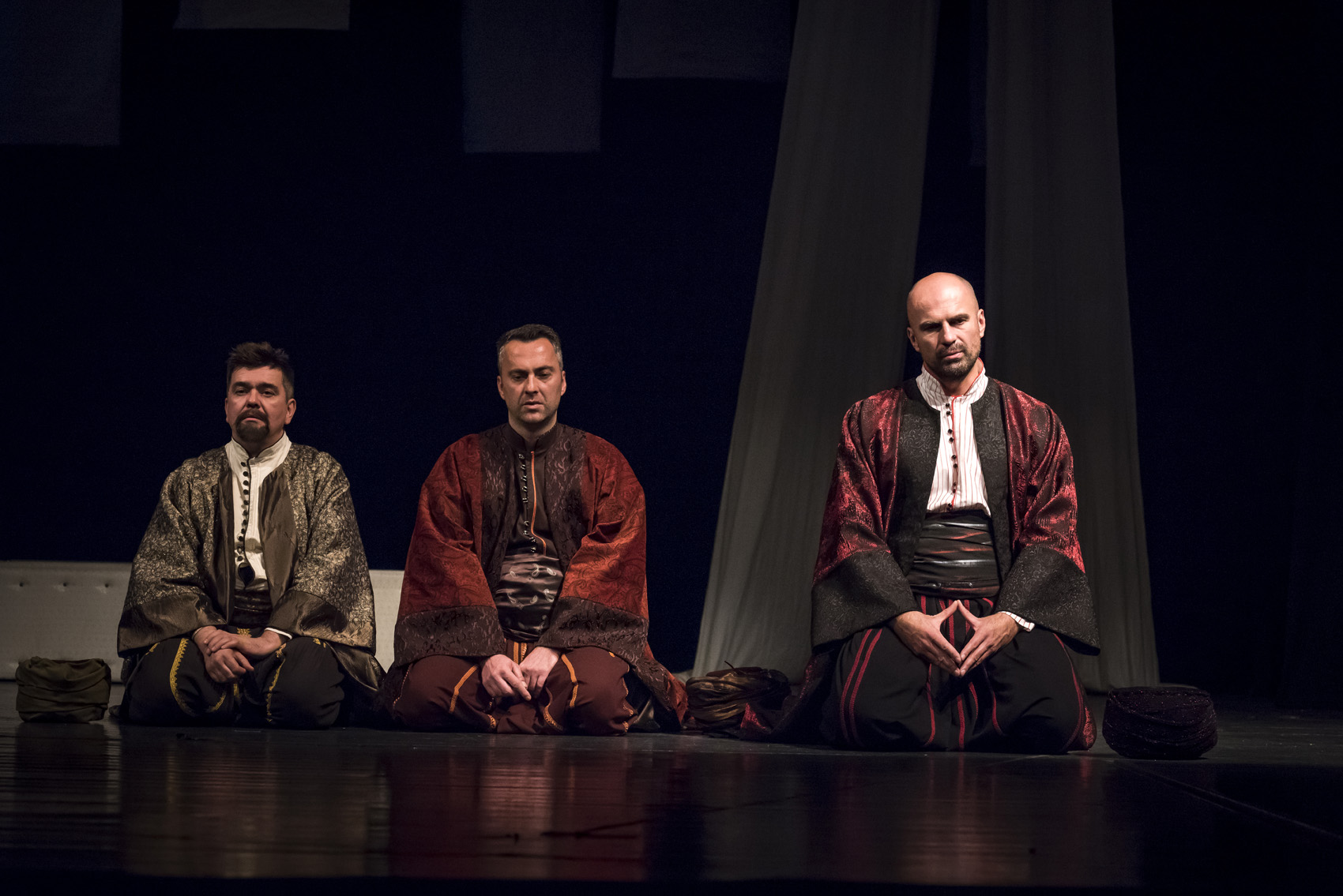 Predstava je inspirisana historijskim ličnostima i događajima, ali donosi aktuelnu priču o univerzalnoj prirodi ljudskih ljudskih karaktera i njihovim odnosima u društvu. Adaptaciju Latićevog teksta radio je Hasan Džafić koji potpisuje i dramaturgiju predstave, a postavkom ove drame Narodno pozorište Sarajevo još jednom je pokazalo da podržava domaće dramsko stvaralaštvo.U predstavi igraju: Aldin Omerović, Emir Fejzić, Vedran Đekić, Merima Lepić-Redžepović, Ejla Bavčić-Tarakčija, Ermin Sijamija, Helena Vuković/Mona Muratović, Mehmed Porča, Aleksandar Seksan, Damir Kustura, Hasija Borić-Stojić, Riad Ljutović, Alen Muratović, Nerman Mahmutović i Davor Sabo.