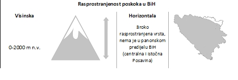 Na proljeće se ženke poskoka (ali i drugih pomenutih otrovnica) često mogu naći i pored ostataka snijega – zbog instinktivne potrebe koja će omogućiti potpuno sazrijevanje jajnih ćelija. Naseljava gotovo čitavu BiH od nivoa mora do visokih planinskih ekosistema. Odrasle jedinke se hrane uglavnom sitnim sisarima i pticama, većim gušterima i drugim zmijama. Vrlo često se poskoci, posebno krajem ljeta i u toku jeseni, penju na drveće, grmovito rastinje i visoke stijene (zbog ishrane i termoregulacije). Zbog toga, neoprezni ljudi budu ugriženi od strane takvih jedinki u glavenim ili vratnim predjelima tijela, pa je po narodnom vjerovanju dobio ime po tome da visoko skače. Otrov poskoka je snažan, te je jedina po život opasna vrsta zmije u BiH.