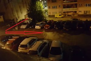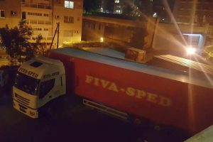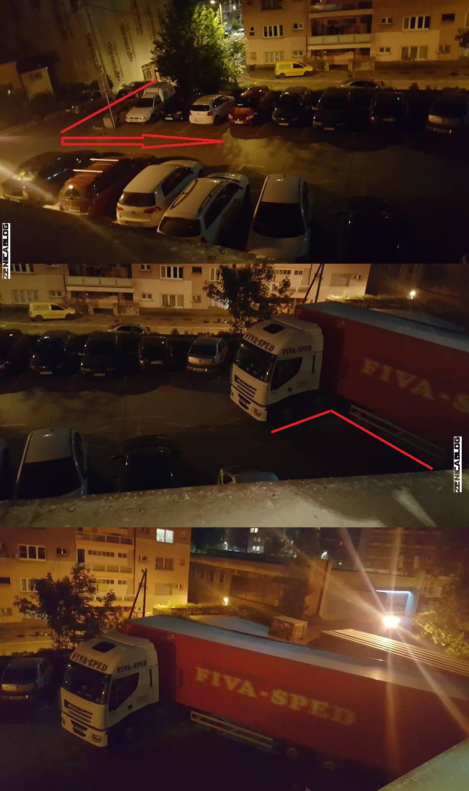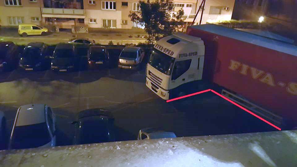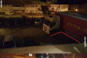 FOTO: bravurozno parkiranje vozača makedonskog šlepera kod BNP-a – Naš prijatelj iz Cabaret Cluba u zgradi Bosanskog narodnog pozorišta Zenica, Andrija Petrović, fotografisao je u utorak uvečer neobično, ali prije svega virtuozno “djelo” tada još neimenovanog vozača kamiona iz Makedonije, koji je uparkirao šleper kod službenog ulaza u skladišni prostor BNP-a.
