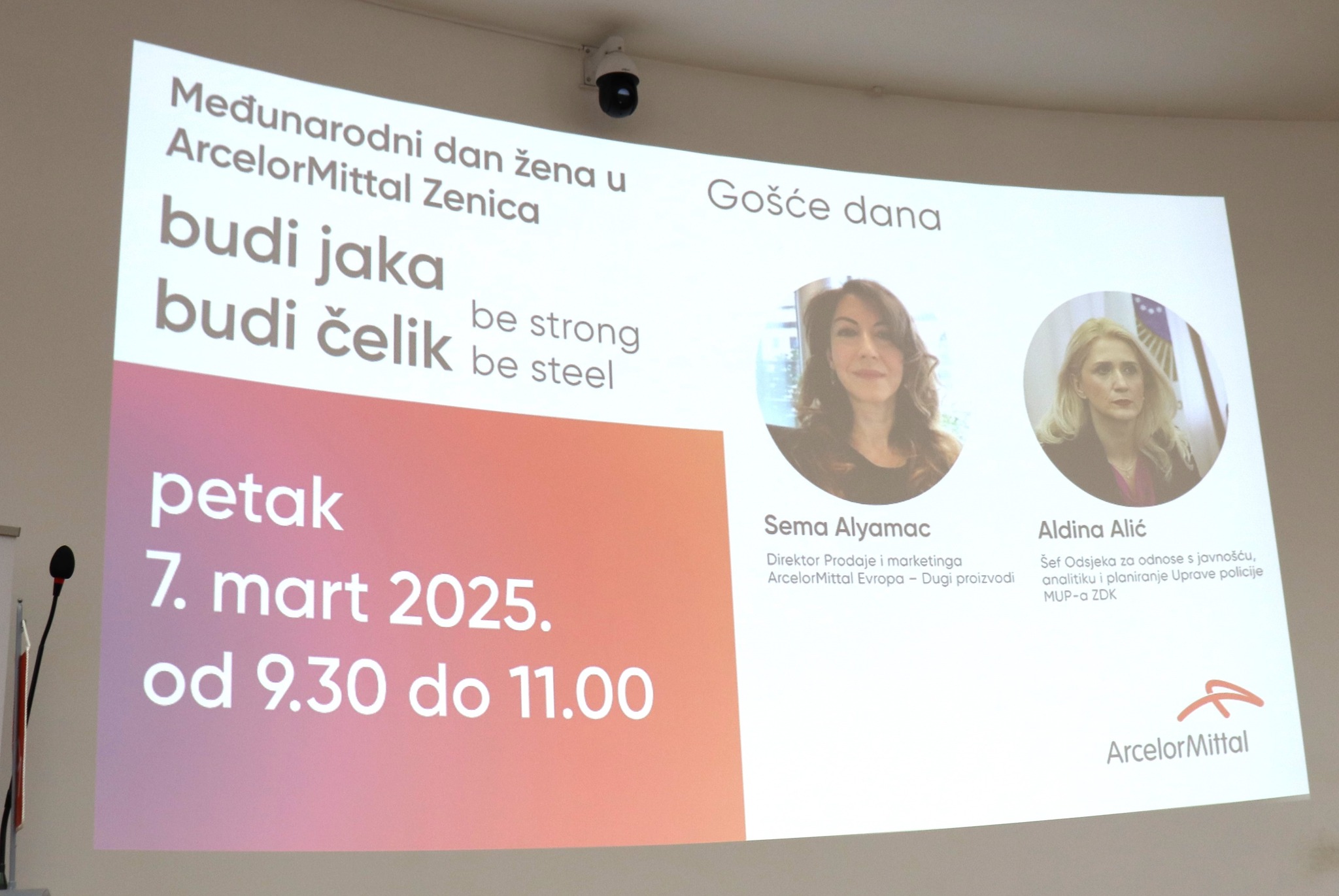 Povodom Međunarodnog dana žena (IWD), 7. marta 2025. Department za ljudske resurse i Komunikacije ArcelorMittal Zenica organizirali su još jedno inspirativno gostovanje dvije uspješne žene, koje su sa zaposlenicama AMZ-a podijelile svoja iskustva u poslovnom svijetu, ali i izazovima usklađivanja privatnog i poslovnog života.