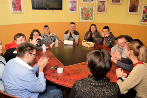Naime, protekla 4 mjeseca sa osobama sa posebnim potrebama je radila svjetski priznata majstorica enkaustike (tehnika slikanja peglom i voskom) Zdena Šarić-Pisker, učeći ih tehnikama slikanja na platnu, kartonu, staklu, dasci i keramičkim pločama. Iako su slike izložene 15.12.2017. i sa tom postavkom je i otvoren festival, večeras je upriličena prodaja slika sa bogatim kulturno-umjetničkim programom, za koji je bio zadužen umjetnički direktor festivala Miroljub Mijatović, koji je i rukovodilac Dječje, omladinske i lutkarske scene u Bosanskom narodnom pozorištu Zenica.