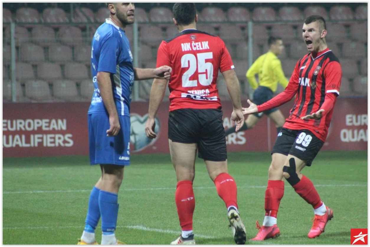 Gosti su bolje otvorili meč, ali nisu uspjeli da kreiraju neku priliku za gol. Nakon 15-tak minuta domaći se bude, te kreću u ofnzivu prema golu gostiju. Ipak njihove napade je malo poremetila povreda prvog strijelca i jednog od najboljih igrača Selima Žune, koji je u 18. minuti radi povrede koljena napustio igru. Ipak Čelik do vodstva dolazi u 20. minuti, s lijeve strane ubacio je Kovač, a Vardo glavom prebacio za Mahmutovića koji u padu sa pet metara pogađa za 1:0. Do kraja prvog poluvremena pravo je čudo kako gosti nisu primili još koji gol, budući na nekoliko prilika preko Mahmutovića, Varde i Sivca koji nisu imali koncentracije u završnici.