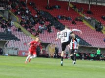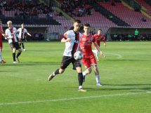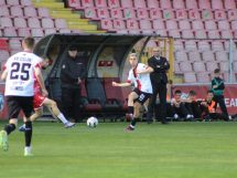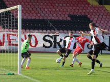Bez obzira na sastav, crno-crveni su od prve minute krenuli ofanzivno ka golu gostiju, a nakon nekoliko propuštenih šansi do vodstva dolaze u 18. minuti. Tarik Zukić sjajno je prošao po lijevoj strani, te je ubacio loptu u peterac gostiju, a neko od igrača Usore igrao je rukom, te je glavni sudija Anes Hamidović pokazao na bijelu tačku. Siguran izvođač bio je kapiten u današnjem susretu Selim Žuna za 1:0 za Čelik. U nastavku još nekoliko šansi domaće ekipe, a novi gol u mreži gostiju postignut je u 44. minuti kada je Mirsad Šijerkić snažno šutirao sa oko 18 metara i pogodio mrežu gostiju za vodstvo Čelika rezultatom 2:0, to je ujedno bio i rezultat prvog dijela.