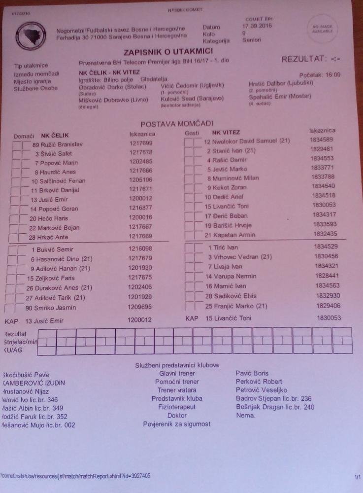 REZULTAT: ČELIK – VITEZ 0:1 (0:0);