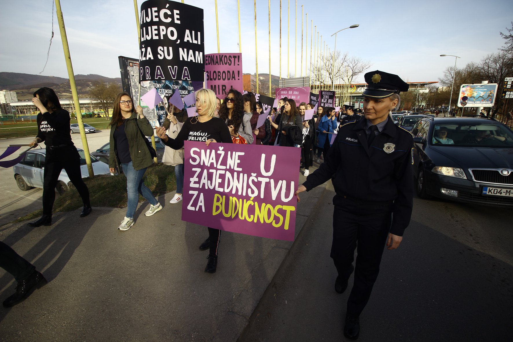 Šetnja koja je započela ispred Shopping centra “Džananović” u Zenici nastavila se glavnim gradskim ulicama do Trga Alije Izetbegovića, uz poruke sjećanja na borbu za ženska prava i zaustavljanja nasilja nad ženama.