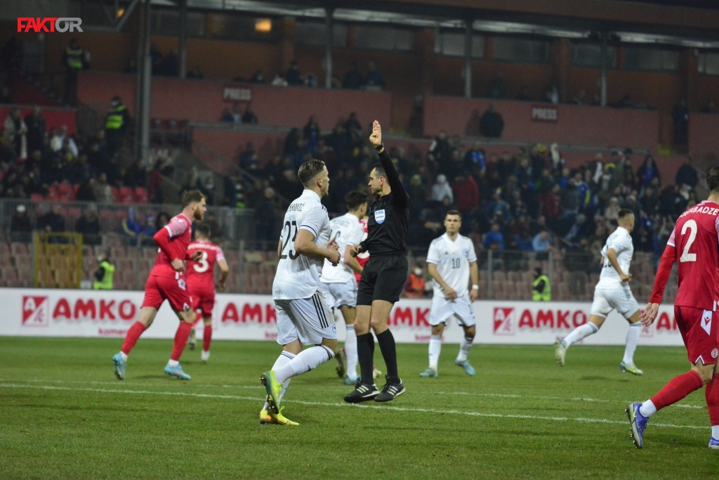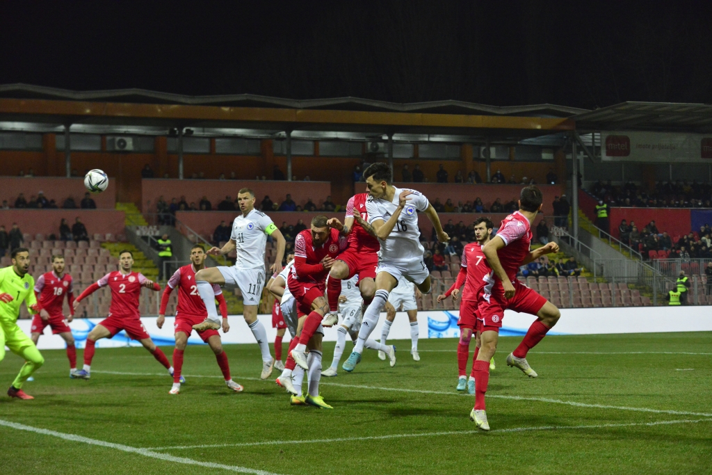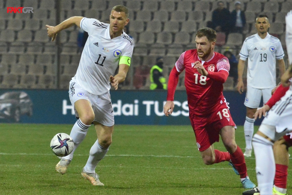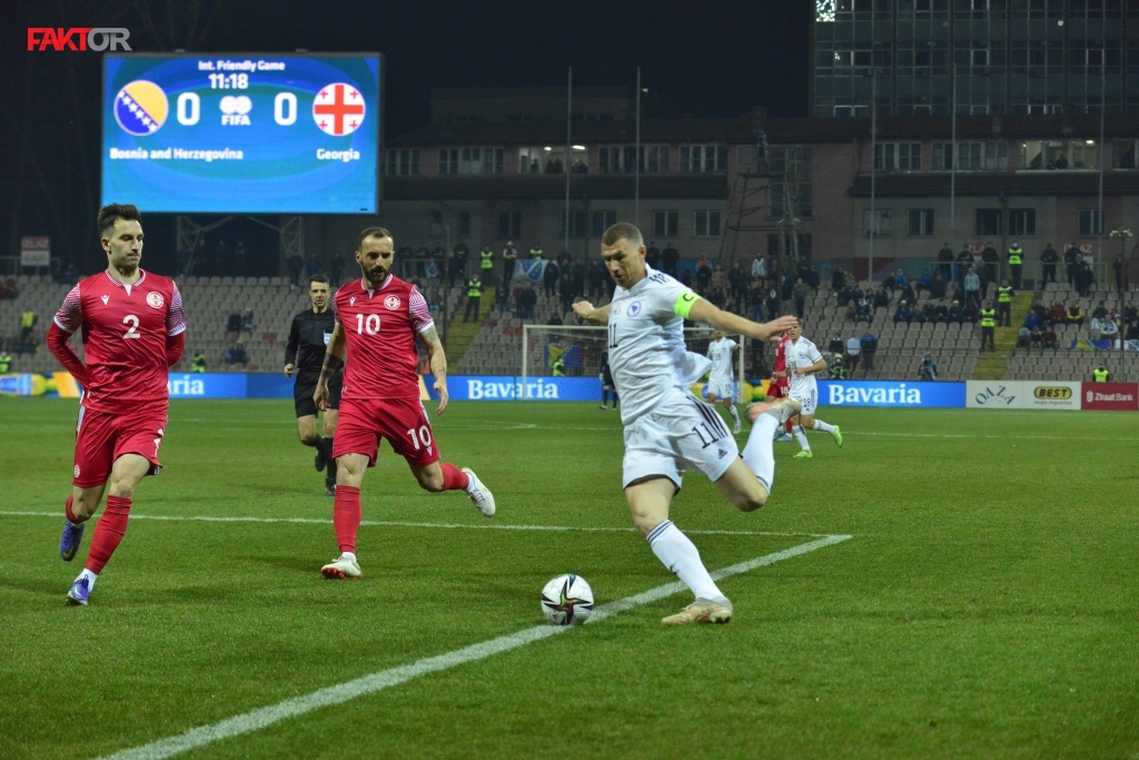 Izabranicima selektora Ivayla Peteva ovo je bio četvrti uzastopni poraz, a treći u posljednji tri utakmice na zeničkom stadionu koji je nekada bio neosvojiva tvrđava za protivničke timove (Finska 1:3, Ukrajina 0:2, Gruzija 0:1). Rezultati u proteklom kvalifkacionom ciklusu (najgori u historiji bh. tima), kao i večerašnji poraz očit su dokaz da bugarski stručnjak nije kapacitet za klupu Zmajeva. Zmajevi su dobro otvorili utakmicu i u sedmoj minuti imali su tri velike prilike. Prvo su prijetili Kolašinac i Gojak, a rezultat svega bio je korner nakon kojeg Kovačević pogađa stativu. Desetak minuta kasnije Gruzijci su bili u mat poziciji. Kvaratskhelia je ubacio sa desne strane, a Davitashvili je zakasnio u djeliću sekudne pa Šehić nije morao interevenisati. Veliku priliku u 24. minuti imao je Demirović. Kashia se poigravao, izgubio je loptu na dvadesetak metara od svog gola, a uporni Demirović krenuo je sam prema golu rivala. Šutirao je sa vrha šesnaesterca, ali lopta odlazi pored gola. U 43. minuti zatresla se mreža Gruzije, ali je gol Kovačevića poništen zbog ofsajda. Svemu je prethodila velika prilika za BiH, kada je Džeko šutirao glavom, a golman Loria panterskom intervencijom spašava goste.