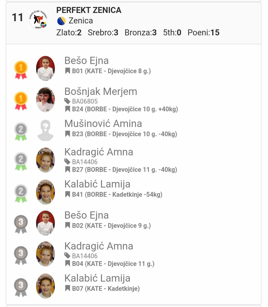 – Ejna Bešo u kategoriji kate 8 godina