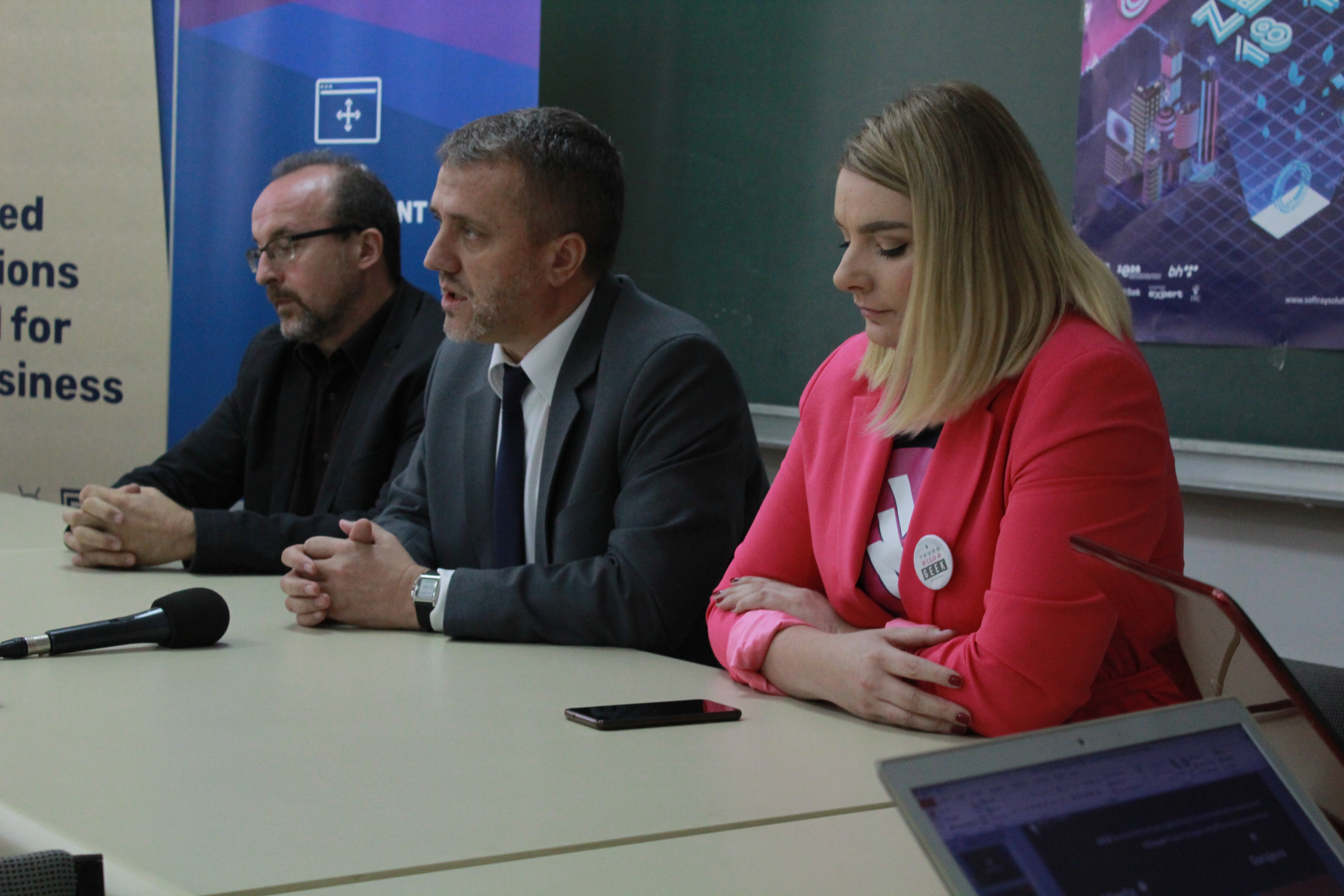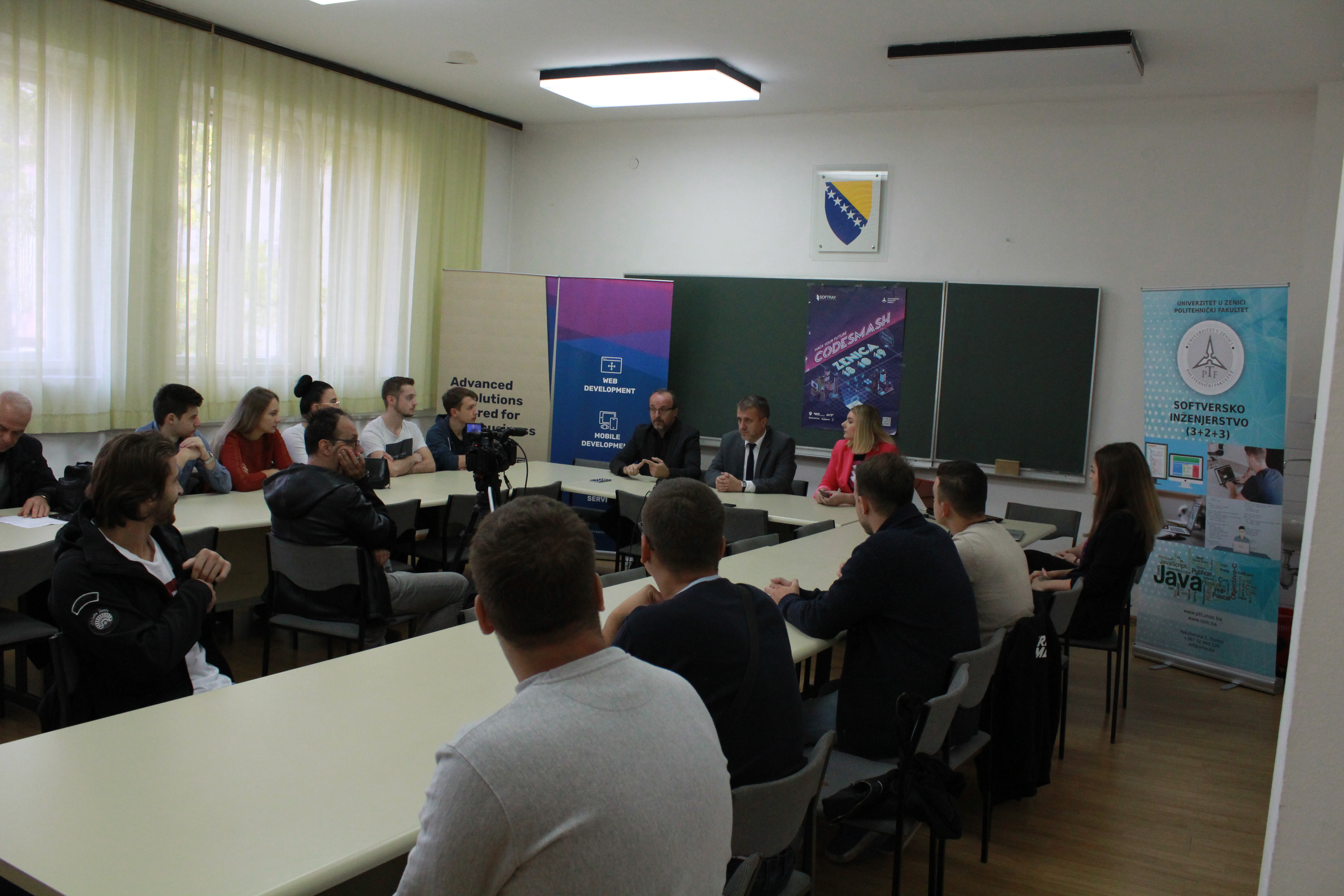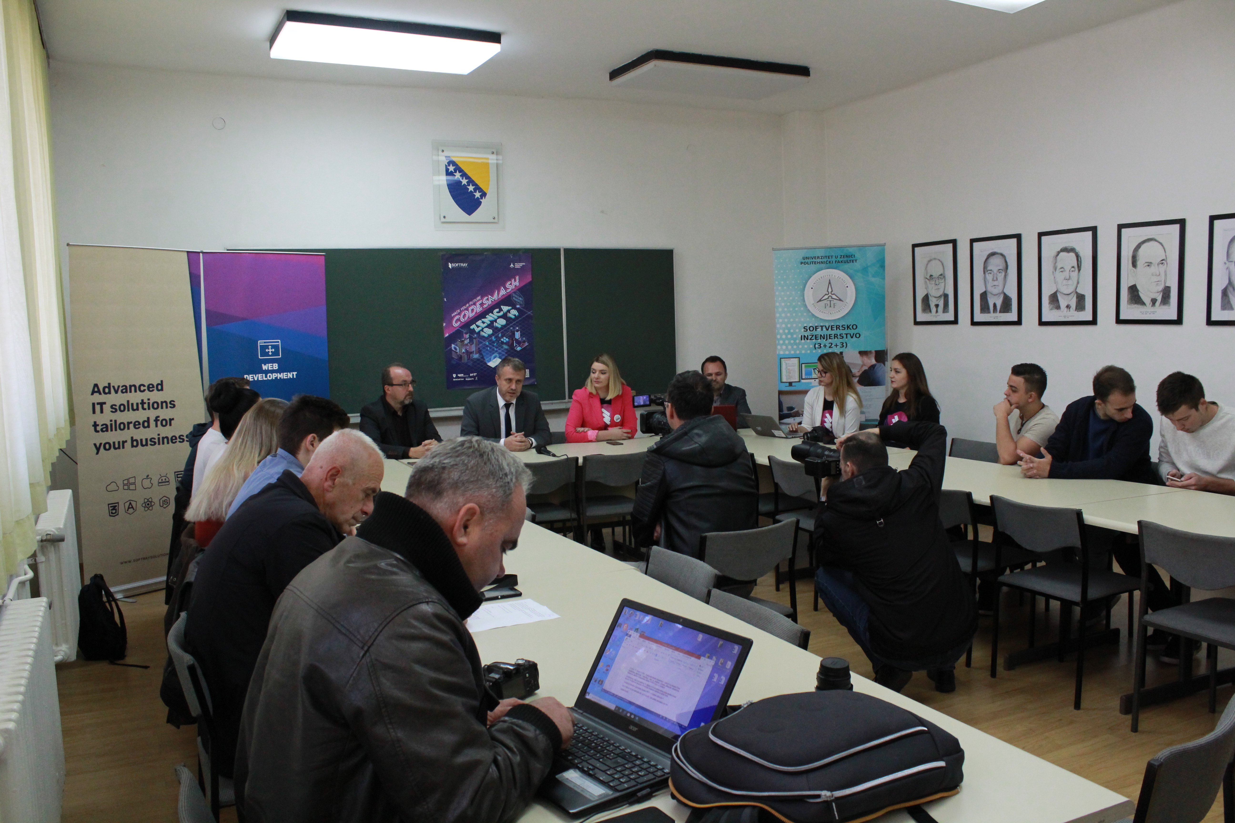 Predstavnicima medija obratili su se prof.dr.sc. Sabahudin Jašarević, dekan Politehničkog fakulteta, prof.dr.sc. Samir Lemeš, prodekan za naučno-istraživački rad, viši asistent Denis Spahić i Jasmina Bojčić iz Softrey Solutions.