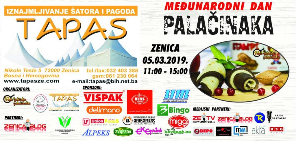 Organizatori Dana palačinaka su bili Tapas iz Zenice, Klub ljubitelja palačinaka, te Udruženje kuhara BiH, a u povodu Svjetskog dana palačinaka, 5. marta.