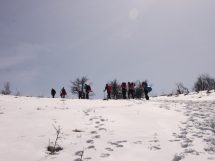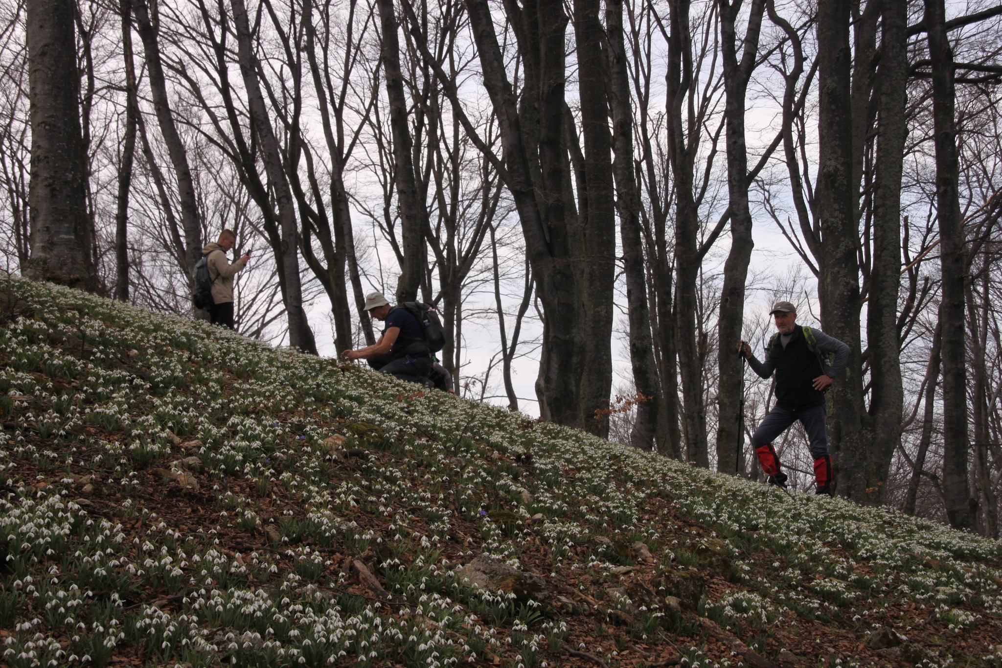 Najljepši pogled bio je na planinsku kraljicu, Vranicu. Imali smo sreću da uočimo i 137 km udaljeni Durmitor u Crnoj Gori, te 109 km udaljeni najviši vrh Bosne i Hercegovine, Maglić. Na Malom Humu, nekih 100 m od vrha Huma, tepih od miliona visibaba i prelijepim mirisom cijele šume bio je nagrada za uspon. Spustili smo se sa Huma grebenom Boževica, gustim i srećom očuvanim bukovim šumama, koje su, nakon Lijepe ravni prerasle u crnogoričnu šumu, prateći nas sve do Gornje Višnjice. U selu nas je dočekalo rukovodstvo mjesne zajednice Lašva, te čaj od udruženja “Žene Lašve – Azra”. Po statistici, planinarili smo 15 km, a savladali smo 1060 metara uspona. Nakon provedene ankete, koju je ispunilo 48 od 103 učesnika, raduje nas što je nešto preko polovine anketiranih bilo u dobnoj grupi ispod 40 godina, što 70% nikada ranije nije planinarilo ovom stazom, a da 20% prvi put planinari sa našim udruženjem.