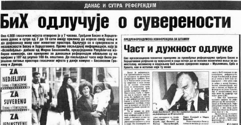 Punoljetni građani Socijalističke republike Bosne i Hercegovine glasali su o nezavisnosti Bosne i Hercegovine na referendumu na kojem je jedino pitanje bilo: Jeste li za suverenu i nezavisnu Bosnu i Hercegovinu, državu ravnopravnih građana, naroda Bosne i Hercegovine – Muslimana, Srba, Hrvata i pripadnika drugih naroda koji u njoj žive?