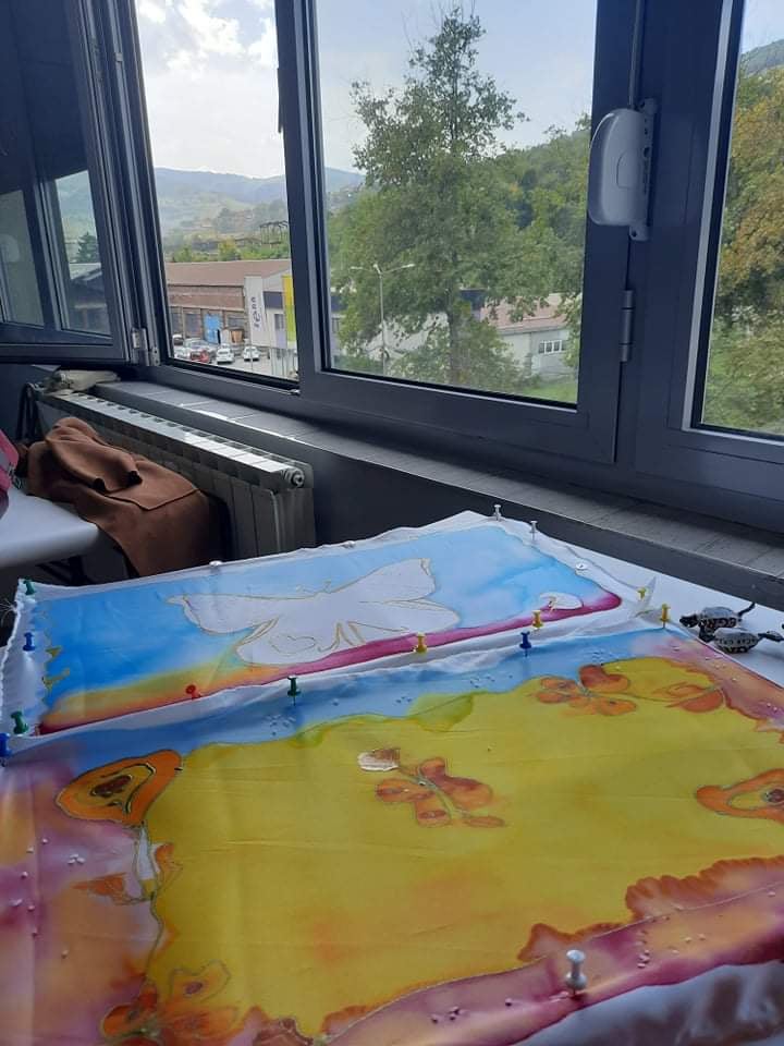 FOTO: Današnje učesnice projekta “Budi kreativan i ti” naučile tehniku oslikavanja svile – Agencija ZEDA je danas uspješno realizovala još jednu kreativnu radionicu u okviru realizacije projekta „Budi kreativan i Ti“. Današnja radionica „Oslikavanje svile“ omogućila je učesnicama radionice da nauče tehnike oslikavanja svile, načine sušenja i fiksiranja boje na svilu.