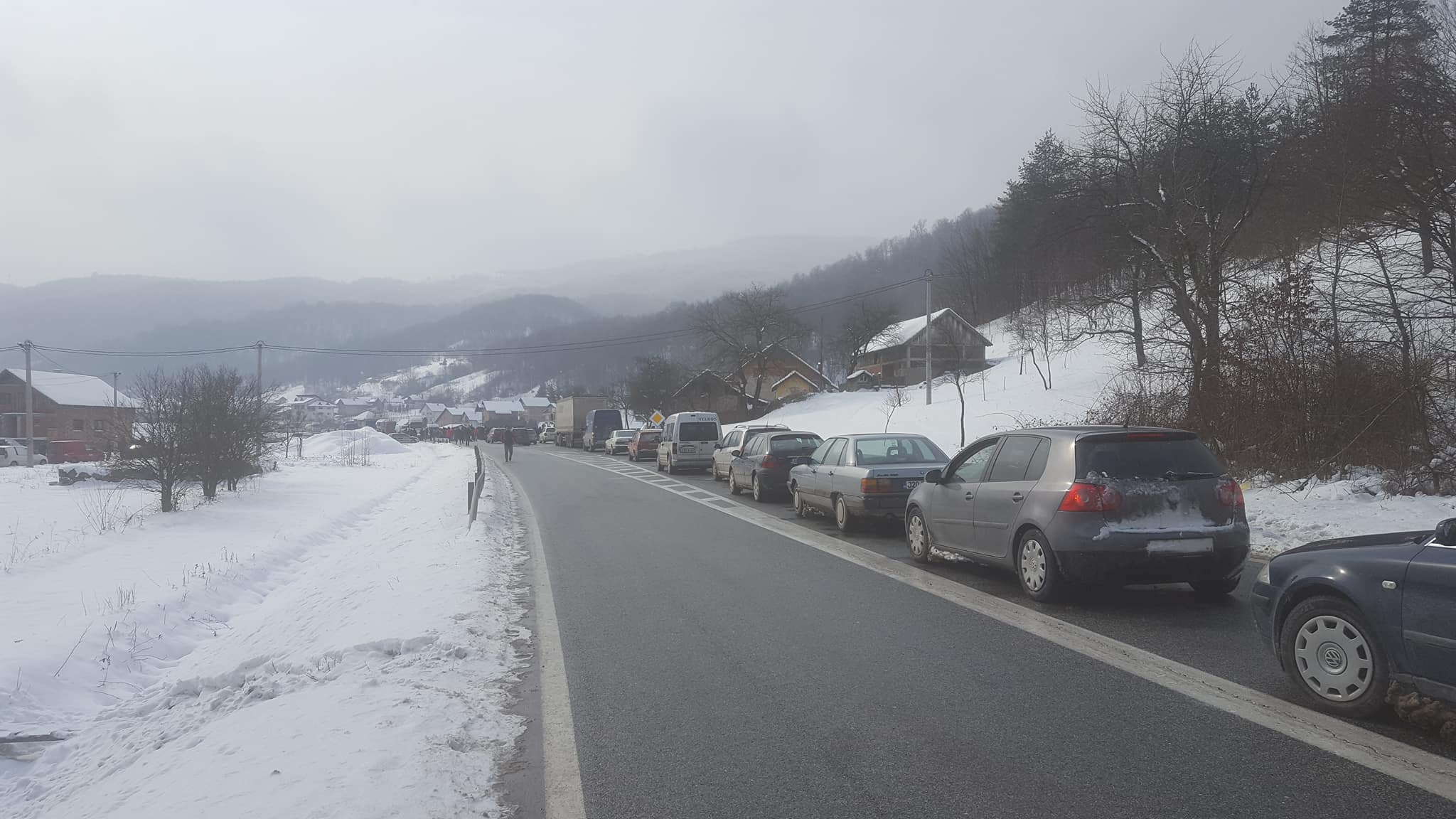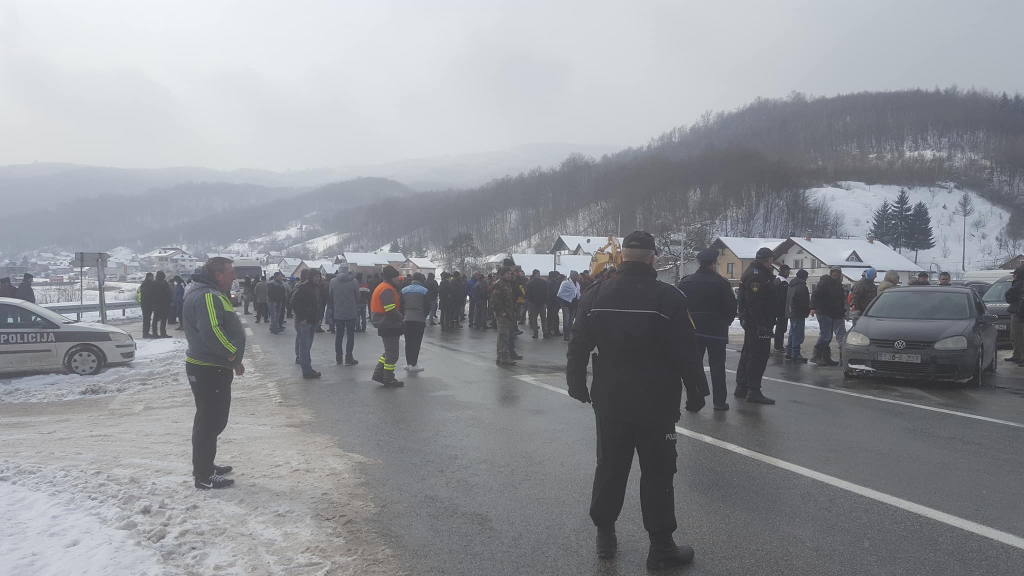 FOTO: Demobilisani borci blokirali M17 u Blatuši, Golubinji i na Karušama – Grupa demobilisanih boraca blokirala saobraćaj na Blatuškoj petlji, a kako saznajemo put je blokiran i na M17, između Topčić Polja i Donje Golubinje, kao i u Karušama (Doboj Jug). Za sada nema informacija o dužini blokade, te namjerama demonstranata. Policija preusmjerava saobraćaj, koji je znatno otežan u cijelom kantonu. Foto: čitaoci ZB
