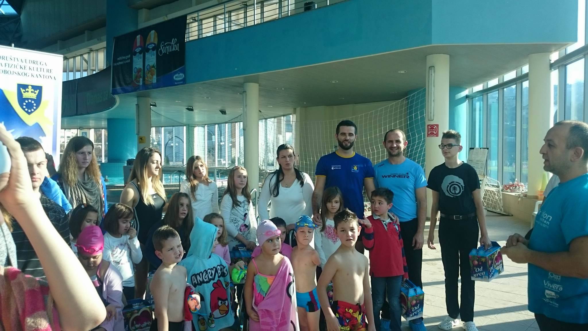 Djeca s invaliditetom su uživala u čarima vode, na Olimpijskom bazenu u Sarajevu, a nakon toga su podjeljeni i novogodišnji paketići.