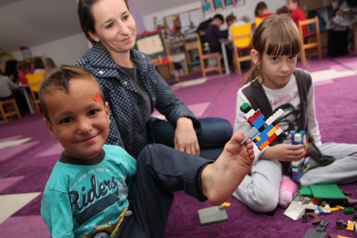 “Ismail je naš drug, zajedno se igramo, učimo, kad dođem kući nekad probam neke stvari uraditi nogama, jednom sam uspjela uzeti kašiku”, pohvalila nam se Asja, a Ismail je već od kockica sastavio brod.