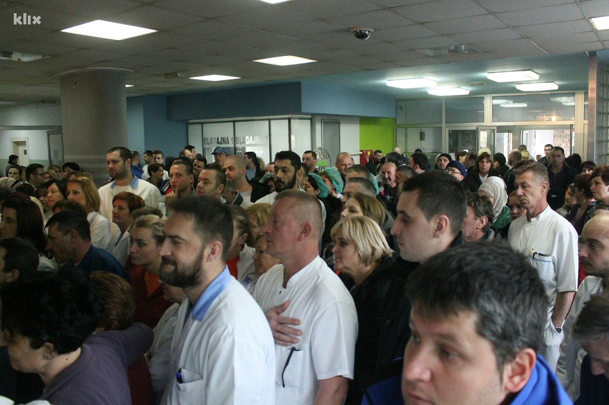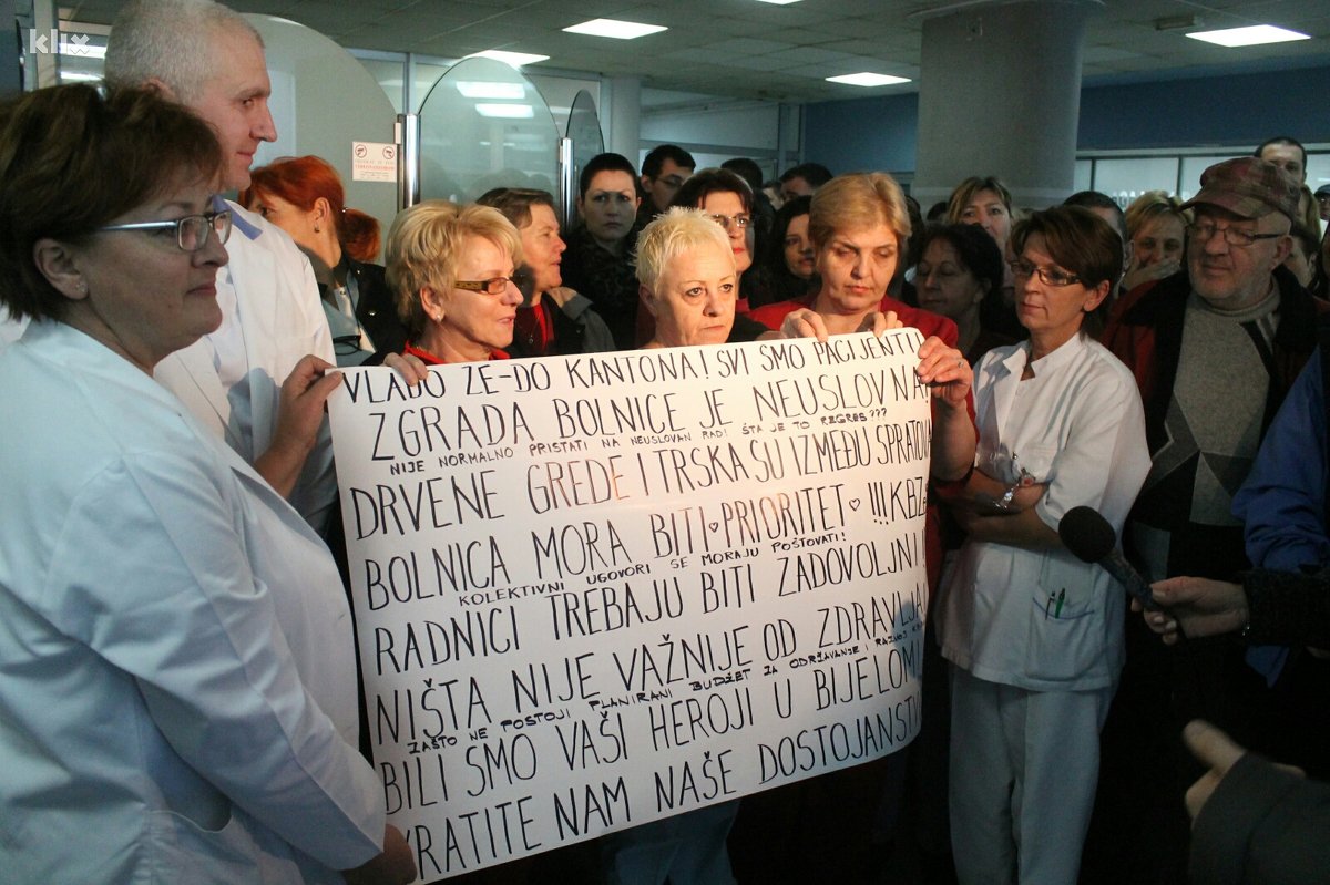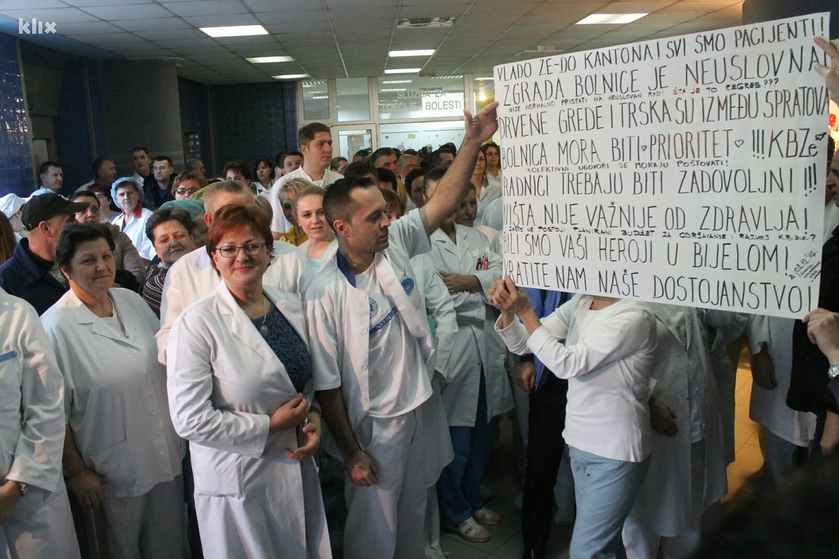 Na transparentu koji su danas držali u holu Kantonalne bolnice Zenica za vrijeme 30-minutnog štrajka zdravstveni radnici su tražili bolje uslove rada i boravka za pacijente te su istakli da Kantonalna bolnica Zenica mora biti prioritet. E.M. / Klix.ba