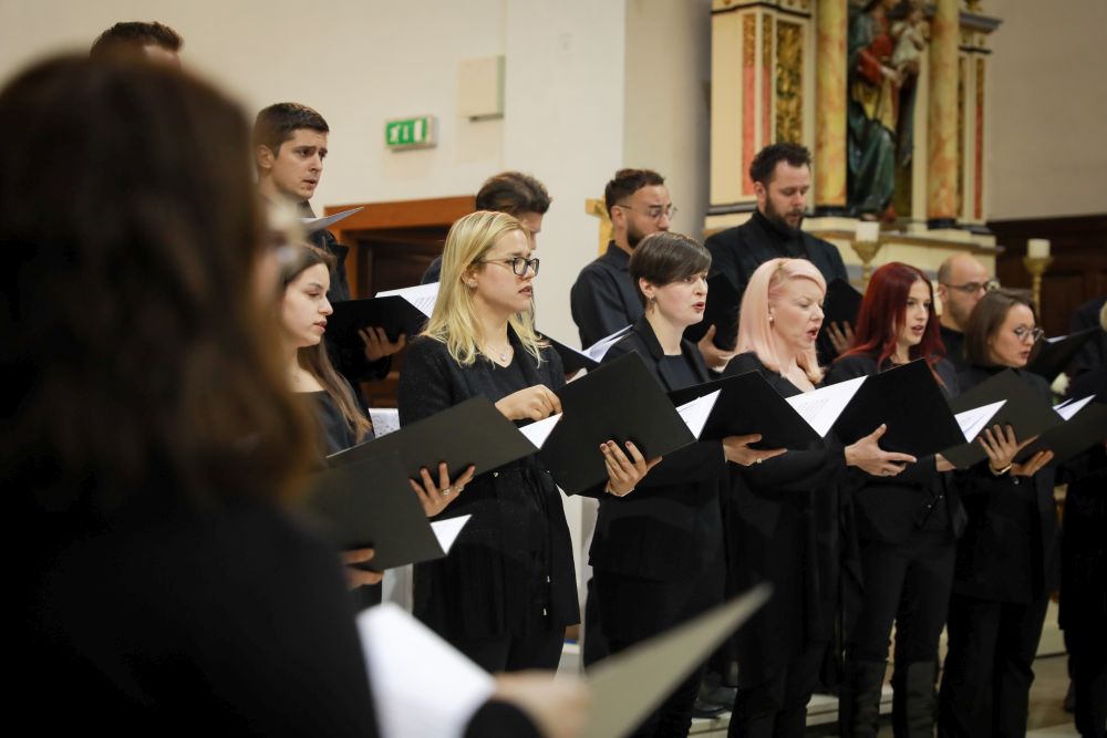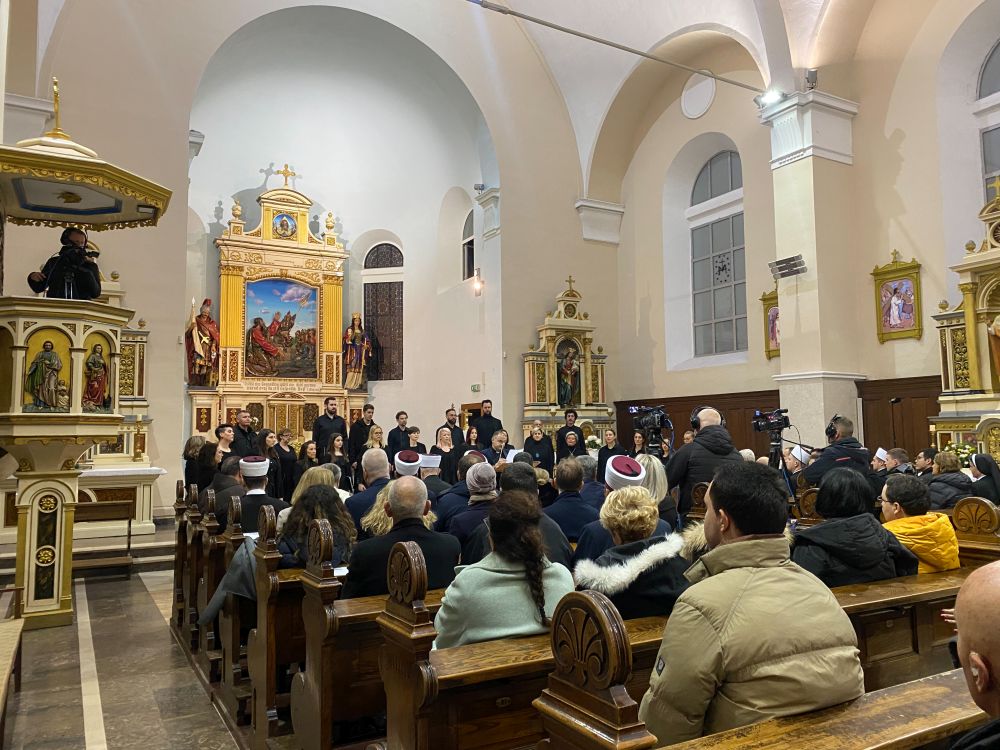 Prisutne je najprije svojom izvedbom Sva djela Gospodnja počastio VIS Novo nebo, a potom su se obratili župnik fra Marko te ambasador Misije OSC-a u BiH Brian Aggeler. Nadalje je upriličen koncert mješovitog kamernog hora Lola iz Sarajeva.