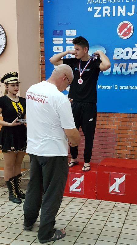Isplivavši dvije discipline 100 leđno i 200 metara mješovito, osvojio je dvije srebrene medalje. Čestitke sugrađaninu, koji našem gradu donosi medalje uprkos tužnoj činjenici da trenira u gradu koji nema bazen u funkciji.