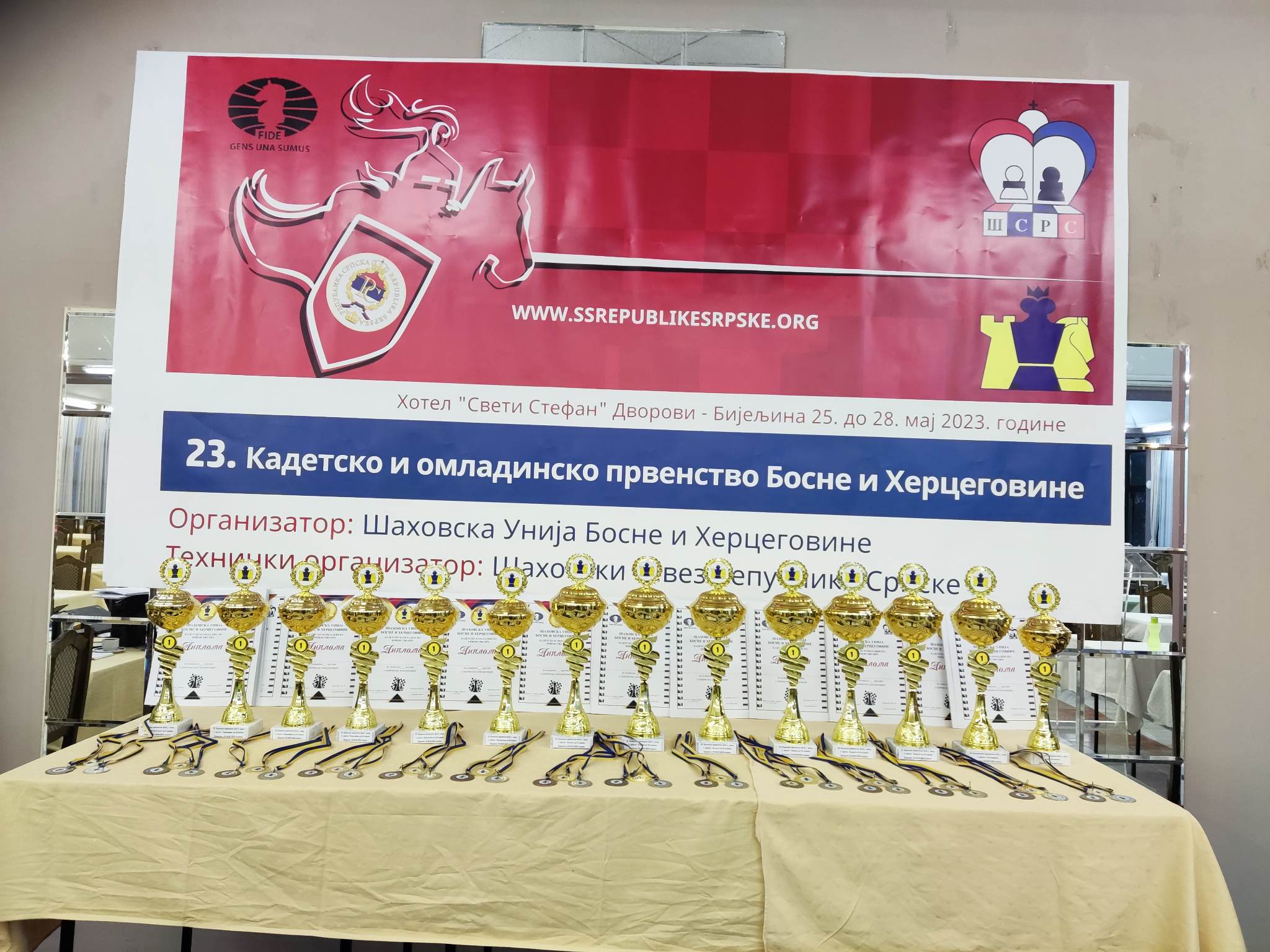 U periodu od 25. do 28. maja 2023. godine održano je 23. kadetsko i juniorsko prvenstvo Bosne i Hercegovine. Tehnički organizator je bio Šahovski savez Republike Srpske. Prvenstvo se igralo u hotelu „Sveti Stefan“, Banja Dvorovi.