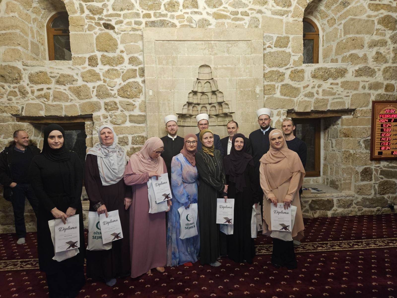U subotu, 3. februara 2024. godine, u džematu Sejmen je održana svečanost promocije novih učača Kur’ana – polaznika mekteba i Kursa Sufare za odrasle. Promociji su prisustvovali glavni imam mr. Sumedin ef. Kobilica i gost predavač hafiz Nijaz ef. Aganhodžić, te roditelji i mnogobrojne džematlije.